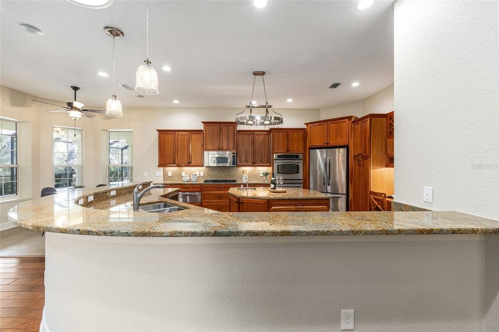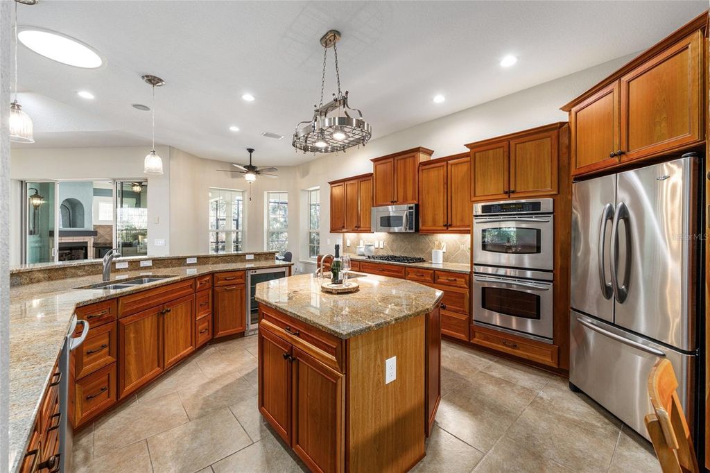 VILLAGE of BRIDGEPORT at LAKE MIONA - Experience high-end living in this Grand ST AUGUSTINE Premier floor plan, situated on a Serene, Park-like property with NO rear neighbors. This Expansive home offers 4,654 sq ft of living space Recently Refreshed with New Interior Paint and UPDATED LIGHTING THROUGHOUT. The Spacious layout features 4 Bedrooms and 4.5 Baths, including a Formal Dining Room and a central Family Room anchored by a Stunning Custom Wood-mantel Fireplace. High Ceilings continue into the GOURMET KITCHEN and Dinette, which Boast Beautiful Hand-Carved Engineered Wood Flooring. A large, versatile Bonus Room with dual Ceiling Fans offers plenty of space for a pool table or home theater, further enhancing the home's GRAND SCALE. Each of the Three Secondary Bedrooms serve as a Private Retreat; two featuring En-Suite Bathrooms and CLOSETS WITH CUSTOM BUILT-IN Organization. Your Private Backyard Oasis features a Massive Screened Birdcage protecting a TROPICAL RESORT-STYLE SALTWATER POOL with Rock Waterfall Features. The area includes a Professional-grade SUMMER KITCHEN with a High-capacity Vent Hood and a Stunning CORNER FIREPLACE with a Custom Mantel and Arched Niche. Recent upgrades include a $75,000 Outdoor Transformation, with Professional Landscaping, Lighting, new gutters, and a Hydra-wise WIFI Irrigation system. Additional highlights include an OVERSIZED 3-CAR GARAGE, a large Circular Driveway, dual HVAC systems and an Attic Radiant Barrier. Take advantage of PRIME LOCATION with easy golf cart access to Lake Sumter Landing Market square ®, Arnold Palmer's Championship Golf Course and Country Club and countless additional amenities throughout The Villages, FL. Make sure to view the VIRTUAL TOUR ---Unit 102 Bond Assessment: $2,259.09/yr (Bond Balance: $13,618.57), Unit 102 Maintenance: $1060.64/yr, Sumter Fire District: $320.71/yr. Monthly Amenity Fee: $204.00