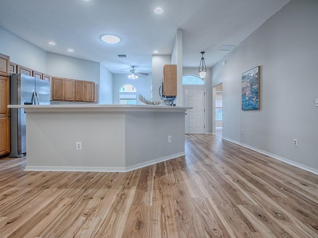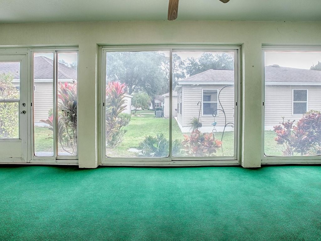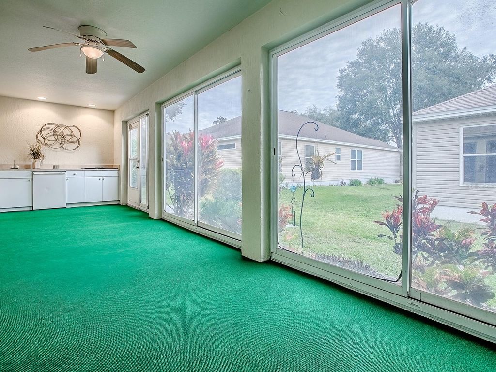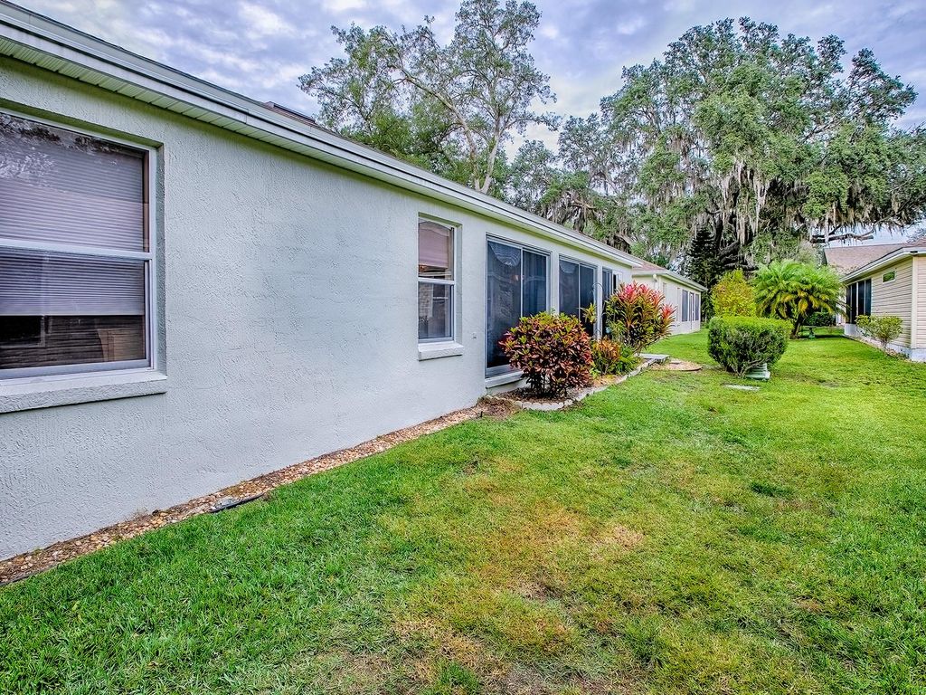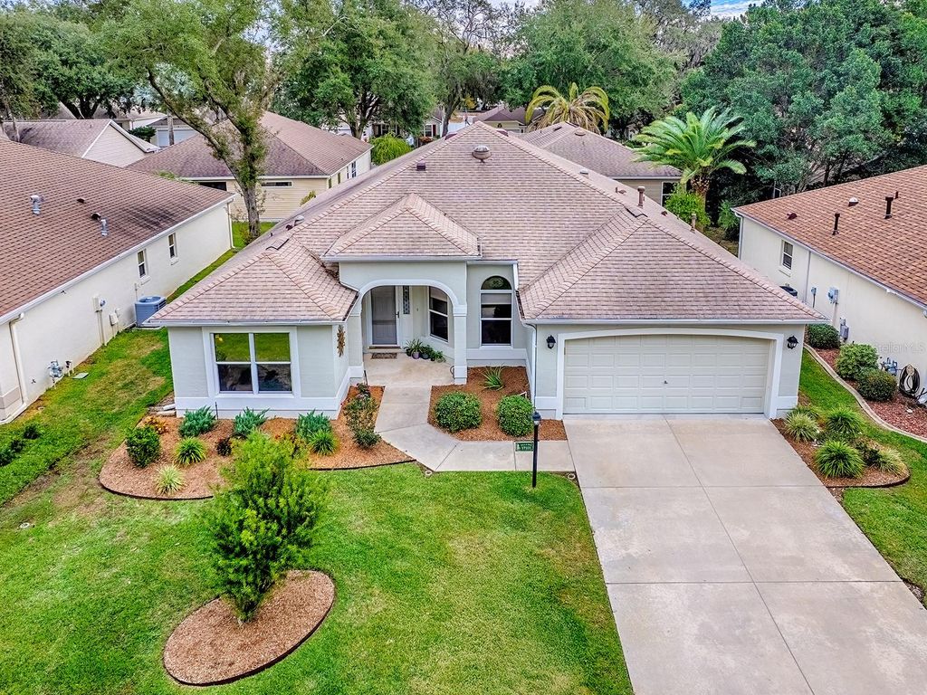 BOND PAID! This 3/2 Magnolia Designer is beautifully situated in the Village of Woodbury and offers the perfect blend of comfort, updates, and location. From the moment you arrive, you'll appreciate the block & stucco construction, freshly painted exterior, and well-maintained landscaping, which create inviting curb appeal. Inside, a welcoming foyer opens to a bright, open floor plan featuring vaulted ceilings, abundant natural light, NEW luxury vinyl plank flooring, and a freshly painted interior. The kitchen is thoughtfully designed with a tile backsplash, oak cabinetry with pull-outs, NEW stainless-steel appliances, natural gas range, recessed lighting, a breakfast bar, SOLAR TUBE, and a sunny breakfast nook. The dining room provides ample space for entertaining, while the spacious living area flows seamlessly to the enclosed lanai through sliding glass doors"”perfect for extending your indoor-outdoor living. PLANTATION SHUTTERS add a touch of sophistication to the home. The split floor plan offers ideal privacy for owners and guests. The primary suite features vaulted ceilings, dual walk-in closets, a large linen closet, double vanities, and an updated step-in shower with seat. Sliding glass doors lead directly to the enclosed lanai with summer kitchen, making it an ideal retreat. The guest wing includes two bedrooms, a full bath with tub/shower combo and solar tube, and an additional hall linen closet. The front guest room (no closet) is a versatile space perfect for a den, office, or hobby room. Additional highlights include Roof 2020, an inside laundry room with a wash-out sink and abundant cabinetry, and a 2-car garage with pull-down attic stairs. Ideally located near Nancy Lopez and Glenview Championship Golf & Country Clubs, Mulberry Grove and First Responders Recreation Centers, Springdale Fitness and Walking Trails, and convenient access to Hwy 441 and CR 466 with shopping, dining, and medical facilities, all just minutes away.