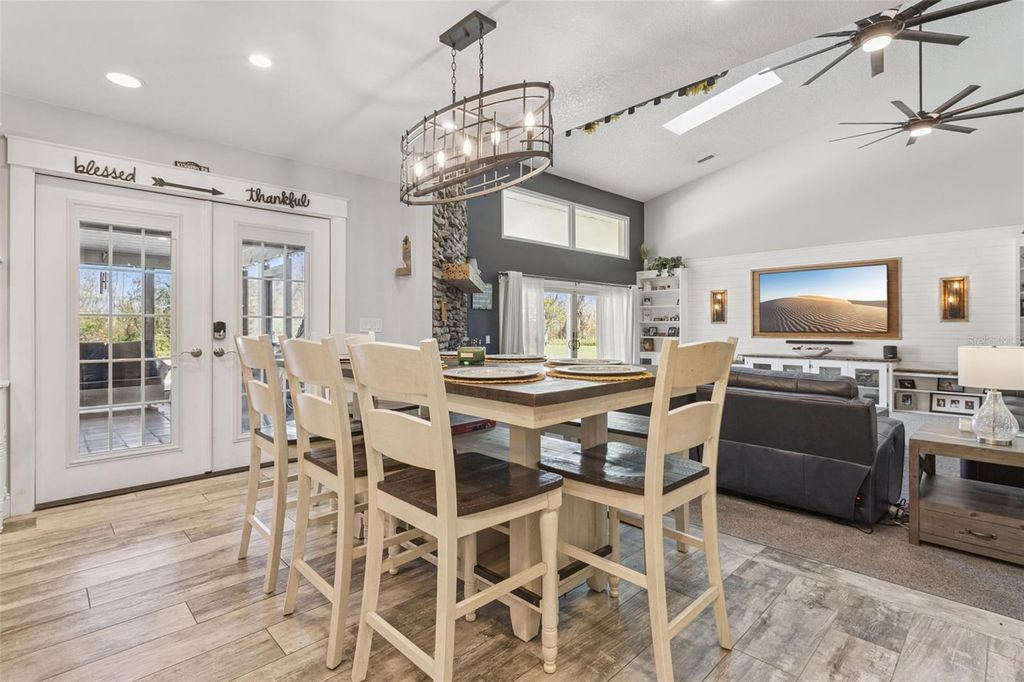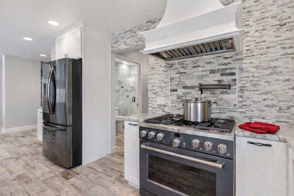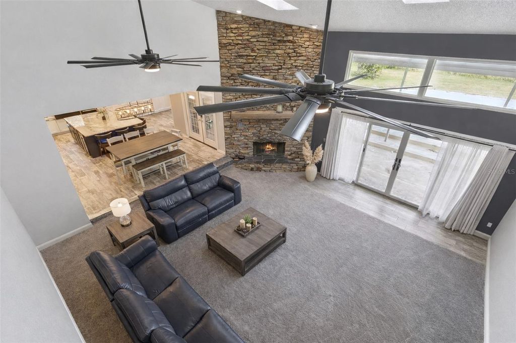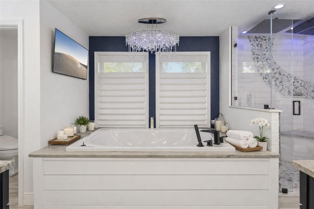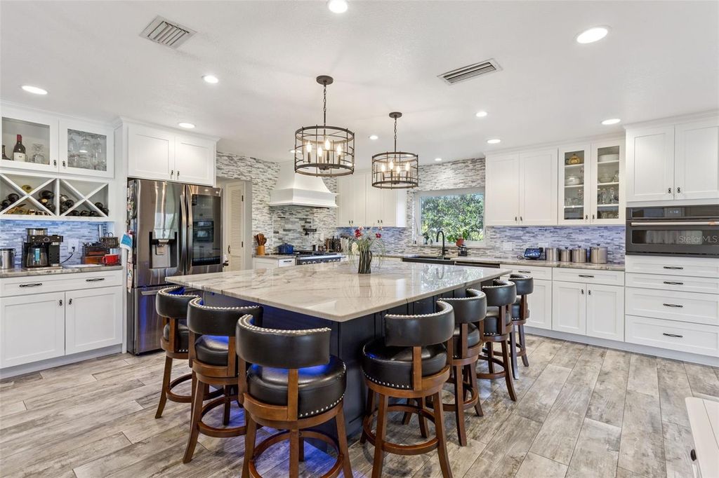 One or more photo(s) has been virtually staged. This exceptional WATERFRONT RESIDENCE has been thoughtfully reimagined with over $375K in high-end upgrades, creating a turnkey luxury retreat with NO HOA and NO REAR NEIGHBORS. The transformation is anchored by a $105K open-concept kitchen remodel featuring custom Wellborn cabinetry, an oversized island crafted from exotic Macaubas Fantasy quartzite, a full suite of GE Café appliances, a 36" commercial-style gas range, dedicated coffee and wine bars, and generous seating for up to 15"”ideal for entertaining. Additional enhancements include a newly added propane gas system, beautifully updated bathrooms with refined marble finishes and spa-inspired features, wide-plank wood-look ceramic tile throughout the main living areas, custom built-ins, a redesigned staircase, and waterproof laminate flooring on the second level. The spa-like primary bath is a true showpiece, appointed with authentic ITALIAN MARBLE FLOORING and walls, a jetted soaking tub crowned by a $3,600 crystal chandelier, digital shower controls with rain heads and body sprays, designer lighting, and a luxury smart bidet with touchless, sensor-activated functionality. A $73K investment in ANDERSEN REPLACEMENT WINDOWS and sliding glass doors enhances energy efficiency, durability, and comfort throughout the home, complemented by fresh interior and exterior paint, enhanced landscaping, and a newly added dedicated electrical panel at the shed providing expanded, property-wide electrical access. The property includes a 50-amp, 220-volt electrical service suitable for RV hookup. Thoughtfully designed for both everyday living and entertaining, the home also features custom digital LED exterior lighting throughout, allowing effortless holiday displays, seasonal color changes, and year-round architectural accent lighting at the touch of a button. Outdoors, the LAKEFRONT LIFESTYLE shines with a fully rebuilt DOUBLE-SLIP BOATHOUSE featuring composite Trex decking, DUAL BOAT LIFTS, electric and water service, offering effortless boating. From the canal, it's just a minute or two by boat to reach open water on Lake Eustis, offering quick access to Lake County's renowned HARRIS CHAIN OF LAKES with miles of interconnected waterways ideal for boating, fishing, cruising, and waterfront dining"”all while embracing a relaxed Old Florida charm. The nearby GOLDEN TRIANGLE of Mount Dora, Eustis, Tavares, and downtown Leesburg offers historic districts, boutique shopping, dining, festivals, and waterfront attractions"”conveniently positioned with easy access to Orlando International Airport, Disney, Universal, and both Atlantic and Gulf Coast beaches.