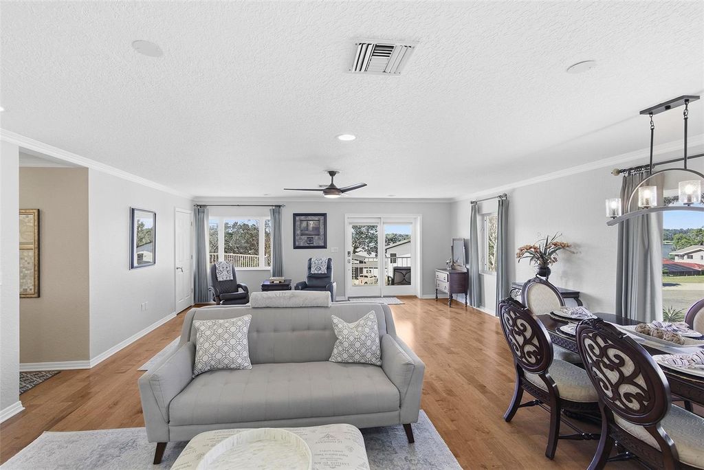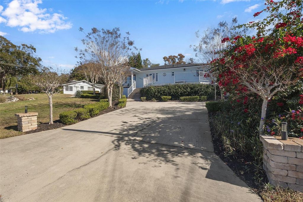 Welcome to this completely remodeled, lake-view residence located directly across from beautiful East Crooked Lake. Offering a total of approximately 3,289 square feet, included in the living space of 2503 is a main home with approx. 1783 s/f and a separate 720-s/f studio loft above the garage, ideal for guests, multi-generational living, or rental income, complete with a separate entrance. A turnkey furnishings package is available, making this home truly move-in or rent-ready. Check out the Virtual Tour by clicking on the Tour 1 Link above ! Step inside the main home and you are immediately greeted by a fresh, modern interior with thoughtful upgrades throughout. The open living and dining areas feature engineered wood flooring, abundant natural light, and seamless flow to a spectacular elevated balcony deck"”perfectly positioned to capture sweeping lake views and unforgettable sunset skies over East Crooked Lake. The kitchen and bathrooms are beautifully updated with granite countertops, offering both style and durability for everyday living and entertaining. The primary living space includes 3 bedrooms and 2 bathrooms, designed for comfort and functionality. Outside, enjoy a private front courtyard patio and an additional private side courtyard ideal for barbecuing and outdoor dining, creating multiple spaces to relax and entertain. Landscaping is intentionally minimal for easy maintenance of this large corner lot, while recent improvements include a new roof in 2020 and a new HVAC system in 2023 for peace of mind. One of the most compelling features of this property is the fully self-contained studio loft located above the oversized garage. Approximately 720 square feet, this space includes a full kitchen, living area, bedroom, bathroom, small office or additional storage. This studio loft is equipped with its own washer & dryer and separate entrance. Whether used as a guest suite, private workspace, or separate rental unit, the loft offers outstanding flexibility and income potential while maintaining privacy from the main residence. The property also features two separate double-car driveways, an extra-large garage with extensive storage, and a layout that supports both everyday living and long-term investment value. Ideally located just minutes from shopping and dining along the US-441 Mt. Dora / Eustis corridor, this home blends lakefront ambiance with everyday convenience. You can be in downtown Mt. Dora in approximately 8 minutes and downtown Eustis in approximately 9 minutes. This is a truly unique home offering"”lake views, flexible living options, extensive upgrades, and rental potential all in one property. Homes in this condition, with this level of versatility and location are rarely available. Make your appt. for a showing today !