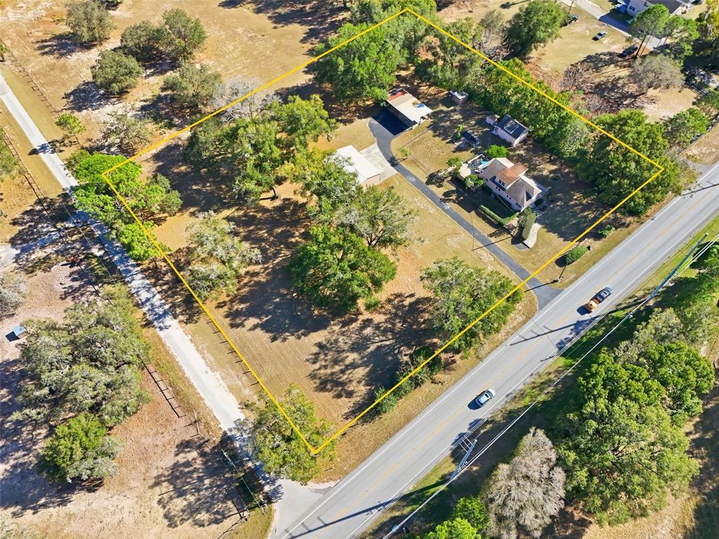 One or more photo(s) has been virtually staged. Celebrating its 100th birthday, this well-maintained home is full of character and sits on 2.36 acres in Sorrento with no HOA. Gorgeous hardwood floors add warmth and timeless appeal to the main living areas, while the 2-bedroom, 2-bath home features a kitchen with granite countertops, a spacious primary suite with a large walk-in closet, an additional room off the primary bedroom ideal for an office or flex space and a gas fireplace in the living room. A rare feature for a home of this era, the property includes a finished 816-square-foot basement with interior access from the kitchen and a private exterior entrance, previously used as a workshop and offering an enclosed room perfect for a man cave, office or hobby space. The property offers exceptional versatility with multiple outbuildings, including a detached two-story building with a one-car garage or workshop below and potential in-law or studio space upstairs, a covered pole barn suitable for boats, vehicles or equipment, and a detached four-car garage with electricity and water, featuring two roll-up style doors (one electric and one manual), ideal for storage, a workshop, or hobby use. Outdoor living is enhanced by an open back patio featuring a unique gas built-in firepit, along with a fenced backyard suitable for dogs, an enclosed fenced storage area, a pump house for the well and convenient access to the 429 and 453 toll roads for easy travel throughout Central Florida.