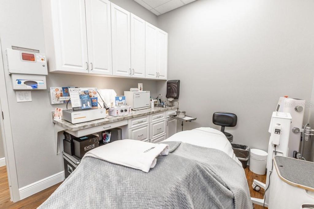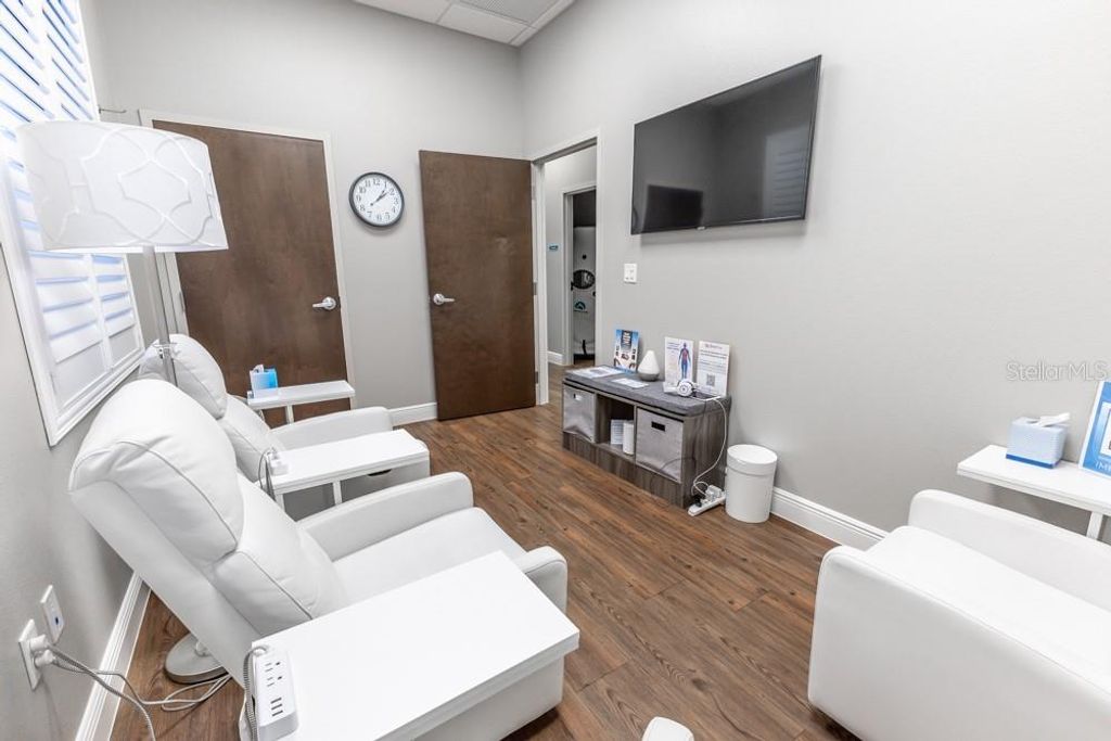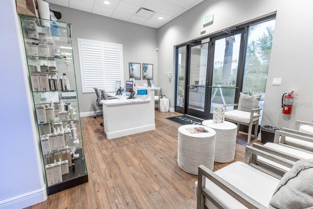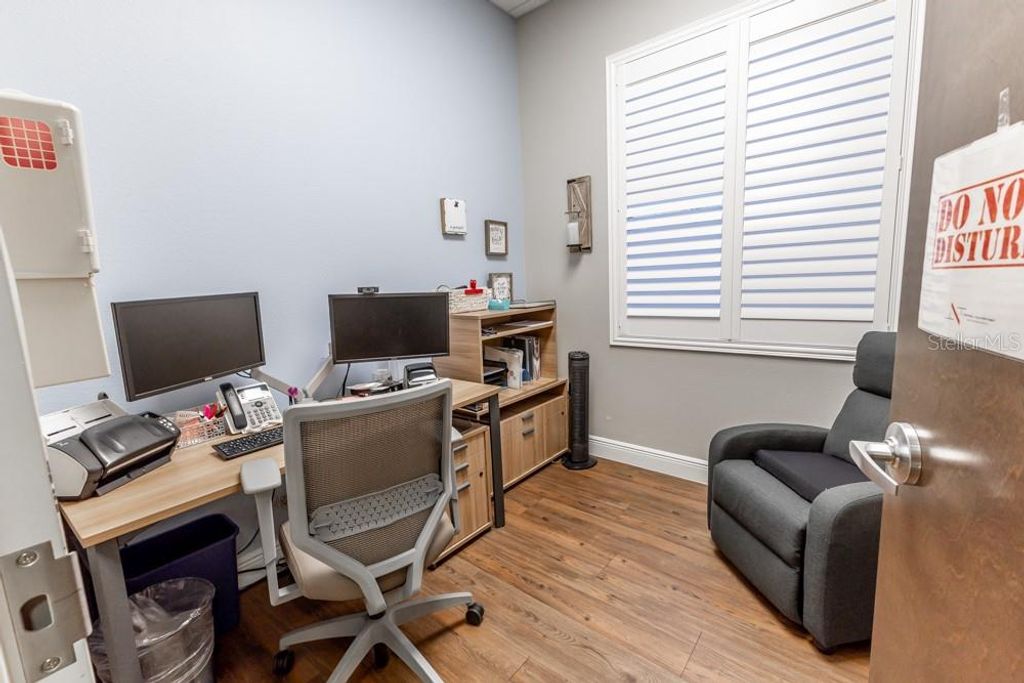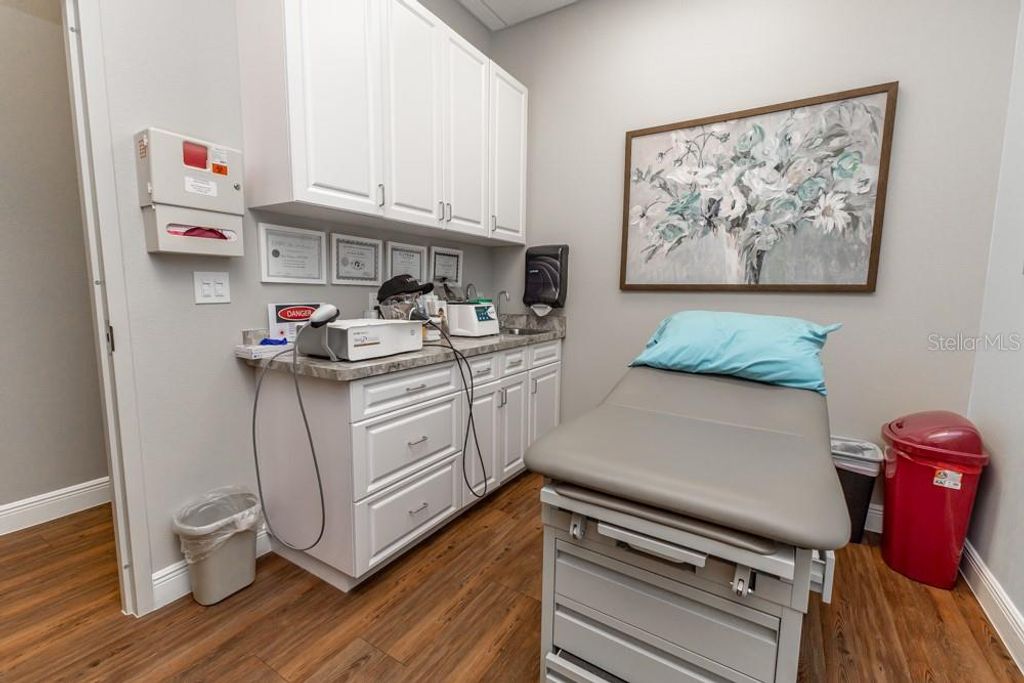 This luxurious, move-in-ready medical suite in the prestigious Sunset Professional Center offers an exceptional opportunity for medical professionals seeking a state-of-the-art space in a prime location. Spanning over 3,700 square feet, this corner unit is fully built-out with the finest craftsmanship by Signature Construction, a leader in professional medical office design. Every aspect of this suite, from the visible details to the hidden touches, exudes quality and sophistication.The suite features a highly flexible split-floor plan with separate ingress and egress points, allowing for either a large single office or two separate offices to co-exist. This unique option provides income-generating opportunities! The current build-out includes three inviting lobby, reception, and display areas with elegant granite countertops and stone fascia. There are two public restrooms, a private restroom, and a luxurious shower and sauna room. Two fully equipped kitchens/break rooms with custom lockers and multiple water stations add to the convenience and comfort of the space. The suite also includes an conference room, multiple procedure rooms, a lab room, counseling rooms, and numerous storage and work stations featuring custom cabinetry and desktops. The property includes an advanced IV Prep Room, designed with closed ventilation to maintain a sterile environment. Access is restricted by a badge-controlled security fob, ensuring only authorized personnel can enter, providing an additional layer of security for sensitive medical preparations The attention to detail throughout the suite is remarkable, with features such as exquisite wood laminate flooring in warm tones, shiplap accent walls, plantation shutters, and premium white trim against light gray walls. The reception areas are adorned with beautiful granite countertops, while drop ceilings with acoustical tiles ensure privacy and a professional atmosphere. The suite is also equipped with a state-of-the-art video security system, making it a safe and secure environment for both staff and patients.Located on CR-Hwy 466, one of the busiest thoroughfares through The Villages"”home to the largest single-site retirement community in the United States, with a growing population of over 140,000 residents"”this medical suite benefits from outstanding visibility and traffic, with 23,500 FDOT average trips per day. Sunset Professional Center is beautifully landscaped and impeccably maintained, providing a serene and welcoming environment for both clients and employees. The property features energy efficiency upgrades, providing cost savings and a more sustainable environmentThis is truly a must-see property, offering a rare combination of upscale design, luxurious finishes, and unparalleled functionality. Don't miss the chance to experience the exceptional quality and thoughtful layout in person. Contact us today to schedule a private showing. *Please note that all property visits are by appointment only. The information provided is believed to be accurate but is not guaranteed and is subject to change without notice.*