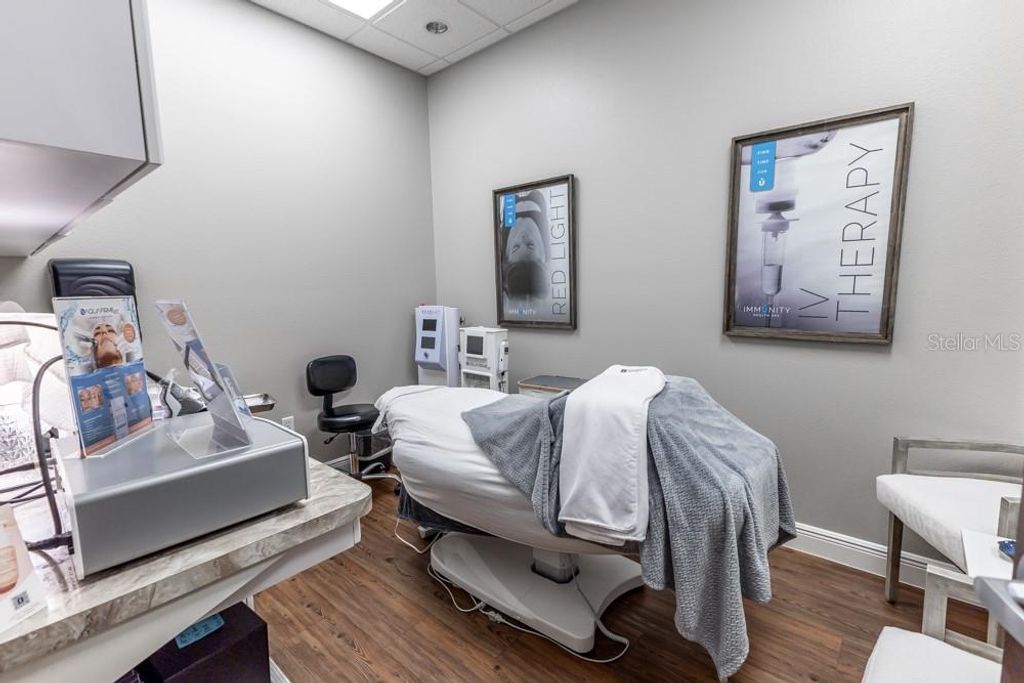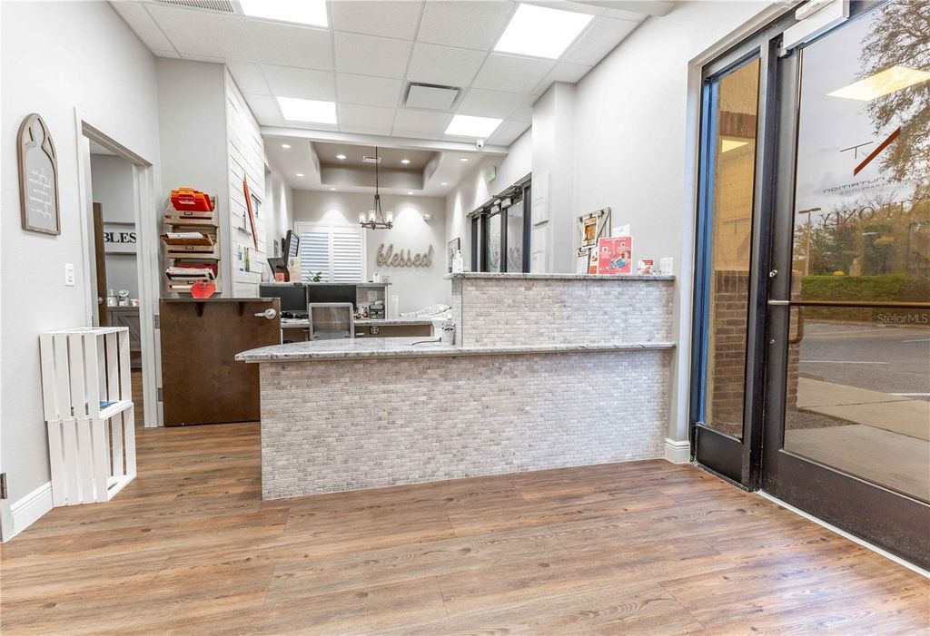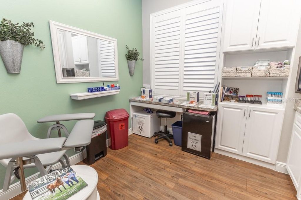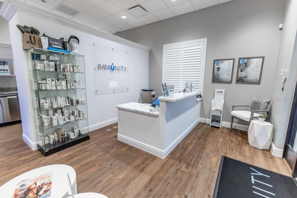 This luxurious, move-in-ready medical suite in the prestigious Sunset Professional Center offers an exceptional opportunity for medical professionals seeking a state-of-the-art space in a prime location. Spanning over 3,700 square feet, this corner unit is fully built-out with the finest craftsmanship by Signature Construction, a leader in professional medical office design. Every aspect of this suite, from the visible details to the hidden touches, exudes quality and sophistication.The suite features a highly flexible split-floor plan with separate ingress and egress points, allowing for either a large single office or two separate offices to co-exist. This unique option provides income-generating opportunities! The current build-out includes three inviting lobby, reception, and display areas with elegant granite countertops and stone fascia. There are two public restrooms, a private restroom, and a luxurious shower and sauna room. Two fully equipped kitchens/break rooms with custom lockers and multiple water stations add to the convenience and comfort of the space. The suite also includes an conference room, multiple procedure rooms, a lab room, counseling rooms, and numerous storage and work stations featuring custom cabinetry and desktops. The property includes an advanced IV Prep Room, designed with closed ventilation to maintain a sterile environment. Access is restricted by a badge-controlled security fob, ensuring only authorized personnel can enter, providing an additional layer of security for sensitive medical preparations The attention to detail throughout the suite is remarkable, with features such as exquisite wood laminate flooring in warm tones, shiplap accent walls, plantation shutters, and premium white trim against light gray walls. The reception areas are adorned with beautiful granite countertops, while drop ceilings with acoustical tiles ensure privacy and a professional atmosphere. The suite is also equipped with a state-of-the-art video security system, making it a safe and secure environment for both staff and patients.Located on CR-Hwy 466, one of the busiest thoroughfares through The Villages"”home to the largest single-site retirement community in the United States, with a growing population of over 140,000 residents"”this medical suite benefits from outstanding visibility and traffic, with 23,500 FDOT average trips per day. Sunset Professional Center is beautifully landscaped and impeccably maintained, providing a serene and welcoming environment for both clients and employees. The property features energy efficiency upgrades, providing cost savings and a more sustainable environmentThis is truly a must-see property, offering a rare combination of upscale design, luxurious finishes, and unparalleled functionality. Don't miss the chance to experience the exceptional quality and thoughtful layout in person. Contact us today to schedule a private showing. *Please note that all property visits are by appointment only. The information provided is believed to be accurate but is not guaranteed and is subject to change without notice.*