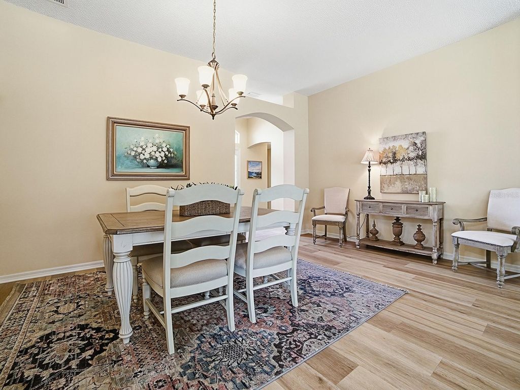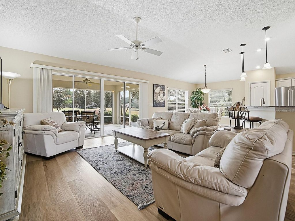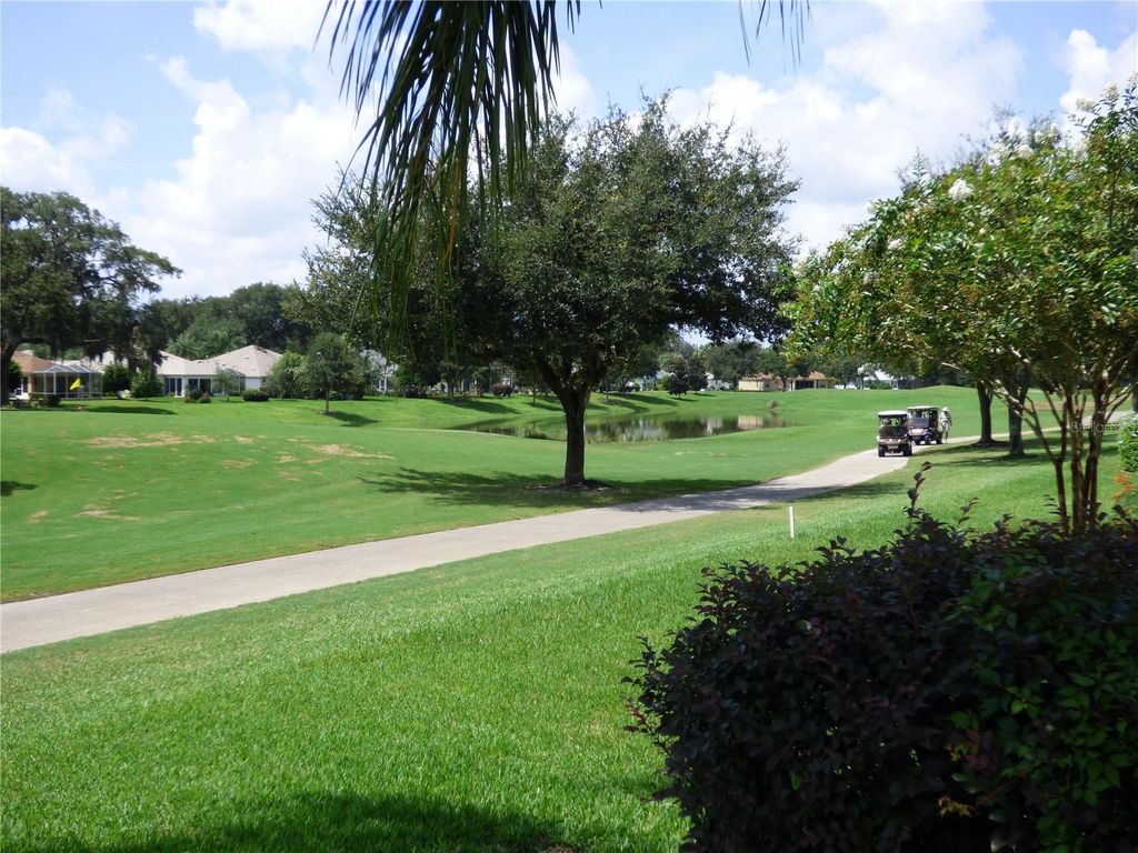 ~"¢Bond is PAID"¢~ ~"¢Roof New in 2023"¢~ Don't miss this EXCEPTIONAL OPPORTUNITY to own a TURNKEY* 3 Bedroom, 2 Bath GOLF-FRONT Lantana in the Village of Chatham, ideally located on the 7th hole of Amberwood Golf Course"”and PRICED to move! This beautifully-maintained home features Gorgeous LUXURY VINYL PLANK flooring throughout the living area and all three bedrooms, creating a seamless and elegant flow. The OPEN kitchen is both stylish and functional with QUARTZ countertops, glass-tile backsplash, bisque cabinets with crown molding, pendant lighting, STAINLESS refrigerator and dishwasher, GAS stove, and a SOLAR TUBE that fills the space with natural light. Relax and take in beautiful golf course views from the screened-in lanai, or enjoy the scenery from the living room, kitchen, and breakfast nook. The exterior is just as impressive, featuring a PAVER driveway and sidewalk, lush landscaping with concrete curbing, and a welcoming front entry with leaded-glass door, matching sidelights, and a transom window - filling the entryway with plenty of soft, natural light. The expanded garage offers room for two cars and a golf cart, along with a painted floor, PLENTY of built-in cabinetry, workbench, and solar tube. Inside, the primary bath includes DUAL sinks and custom California Closets with a solar tube, while the interior laundry room boasts extended built-ins, laminate countertops, bisque cabinetry, ABUNDANT STORAGE, and a utility sink. ~"¢HVAC 2012"¢~ A perfect blend of comfort, functionality, and golf-front living. Home has a GRUNDFOS Water Heating System. Just a short walk or golf cart ride to Chatham Rec Center and Pool! Come find your new peaceful golf-front sanctuary. Great location that is easy in & out of The Villages w/light traffic even in PEAK Season! SUPER close to Chatham Rec Center & Family Pool. Also, FABULOUS and Nearby - the "First Responders" Recreation Center with Walk-in Pool, Pitch-N-Putt Golf Course, PICKLEBALL, and more! Close to Nancy Lopez Country Club, Several Pools (Adult & Family) and Mulberry Grove Rec Center. Shopping, Banking, Restaurants and the VA Center are nearby! Tax line reflects property taxes only, and is estimated. Bond is PAID. Current Maintenance Assessment is $879/year. Current Fire Dept. $284/year. Note: Square footage information is taken from the Public Record and is deemed reliable, but not guaranteed. Room and garage dimensions are approximate: buyer to verify. (*3 Landscape paintings do not convey.) ~"¢"¢BE SURE TO SEE THE 3D 360º MATTERPORT WALKTHROUGH TOUR AT VIDEO TOUR 2!"¢~ ~"¢And see the Custom-Made Floor Plan at the end of the Photos!"¢~