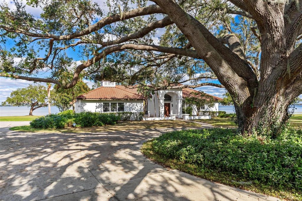 Lakefront paradise in Central Florida with this quality-built Mediterranean-style home on the shores of 4,000 ACRE LAKE YALE. Nestled on about 5 ACRES at the end of an oak-studded parcel, this custom-built oasis combines SIMPLE LIVING with NATURAL BEAUTY. As you approach, FEEL A WORLD AWAY, embraced by calm tranquility with EXPANSIVE lake frontage. Step inside to experience PANORAMIC unobstructed VIEWS of over 240 ft of LAKEFRONT, visible from nearly every room. This home's split design features a 14-foot foyer and spacious 12-foot ceilings framing its waterfront setting. Welcoming you into a space where SIMPLICITY MEETS FUNCTIONALITY, creating a peaceful, almost otherworldly retreat. Perfectly situated between the charming town of Mount Dora and the bustling community of The Villages, this home is convenient to both the vibrant attractions of Disney and Universal and the natural beauty of Florida's beaches and springs. If you dream of privacy, luxury, and an unparalleled lakefront lifestyle, this rare Florida property awaits you. The vacant adjacent lot is also listed for sale. Add that and think about building another home for your family compound on 10 acres total.