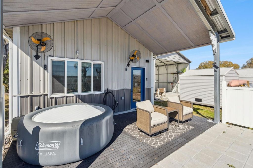 If you've been searching for a well-built waterfront home in Lake Panasoffkee with direct canal access to the lake, this property deserves your attention. Located on a canal just off Lake Panasoffkee, this home offers peaceful water views, excellent construction, and true Florida outdoor living. Constructed with durable metal siding and roofing, this home was built with strength and longevity in mind. Inside, you'll find an open-concept layout with vaulted ceilings that make the main living area feel bright and spacious. Natural light pours in through multiple windows, showcasing clean lines, modern finishes, and a comfortable lake-house feel. The kitchen is thoughtfully designed with solid surface countertops, stainless appliances, ample cabinetry, and a functional galley layout that maximizes space and efficiency. The living and dining areas flow seamlessly together, creating an inviting setting for everyday living or weekend guests. The home features two well-appointed bedrooms and a beautifully finished bathroom with a walk-in tiled shower, subway tile walls, and pebble-style flooring for a custom touch. Step outside to the covered back porch overlooking the canal "” this is where the lifestyle truly comes together. Enjoy morning coffee while watching the water, unwind in the evenings, or cast a fishing line right from your backyard. With quick access to Lake Panasoffkee, you're minutes from boating, fishing, and exploring one of Central Florida's most loved natural lakes. The property also includes a large covered metal carport structure, detached storage sheds for tools or hobbies, a dedicated laundry area, a covered patio with outdoor seating space, a hot tub setup overlooking the water, and open yard space with room to expand or personalize your outdoor living area. Whether you're looking for a full-time residence, seasonal retreat, Airbnb opportunity, or a fisherman's getaway, 645 CR 485A offers solid construction, water access, and low-maintenance living in a prime Lake Panasoffkee location. Canal-front. Durable build. Move-in ready. Schedule your private showing and experience Florida waterfront living at its best.