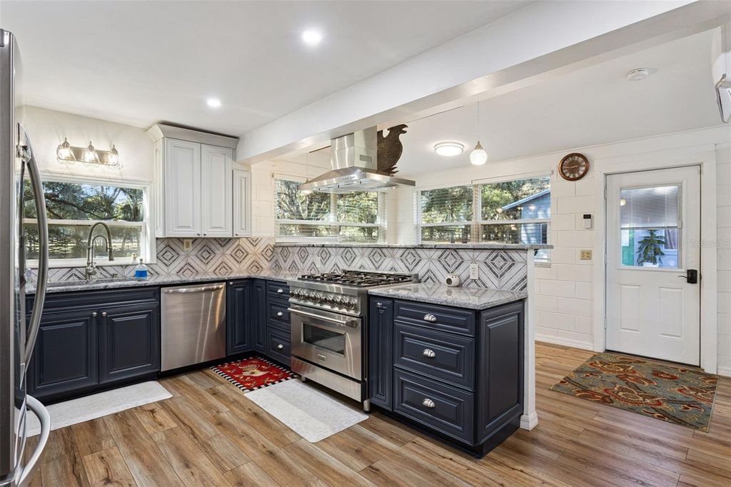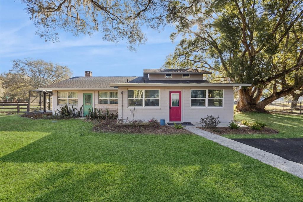 Nestled on five fully fenced acres just north of Umatilla, this completely remodeled 3-bedroom, 2-bath home offers the perfect blend of privacy and modern comfort. Inside, you'll find a beautifully updated wood-burning fireplace, a bright and airy kitchen with abundant cabinetry, a breakfast bar, dinette area, and new stainless steel appliances"”all bathed in natural sunlight. The remodeled laundry room includes a new washer and dryer for added convenience. A screened porch off the north side of the living room overlooks a fenced pet area, creating an ideal space to relax while your animals roam safely. The property also features a small hobby greenhouse, garden area, two-stall barn, and a versatile dog kennel that has also served as a chicken coop. The expansive garage can accommodate up to six vehicles or function as a spacious workshop, and an attached private studio offers the perfect setting for a home office or creative retreat. Enjoy peaceful country living just minutes from shopping and annual festivals in Umatilla, close to the riding trails of Ocala National Forest and the crystal-clear waters of Alexander Springs. The vibrant Golden Triangle communities of Mount Dora, Tavares, and Eustis are just a short drive south, offering even more dining, shopping, and year-round events. This is a rare opportunity to grow your own food"”or your family"”in a truly serene setting.