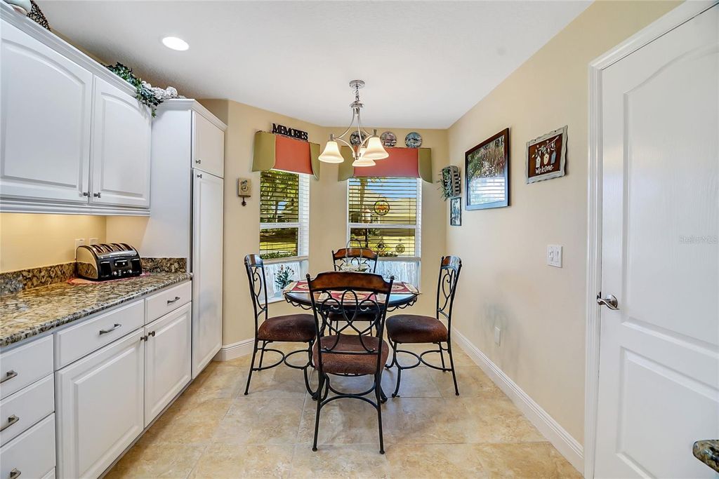 Welcome to this stunning BOND PAID block and stucco 3/2/2 home with golf cart garage in the highly sought-after Village of Sanibel! This beautifully stretched Jasmine Designer model features exceptional curb appeal with a custom-designed driveway, lush landscaping, and an expansive rear patio complete with a charming pergola "” perfect for relaxing or entertaining. Step inside to discover soaring volume ceilings and a desirable split floor plan filled with natural light. The home boasts granite countertops, crisp white cabinetry with convenient pull-outs, solar tubes, tinted windows, and thoughtful upgrades throughout. A Kinetico water filtration system adds quality and comfort. The oversized garage includes Magic Stairs for easy attic access, an electric garage screen, and dedicated golf cart space. Inside, the extended floor plan provides larger bedrooms for added comfort. The spacious primary suite features a large walk-in closet, while the ensuite bathroom offers dual vanities and a Roman shower for a spa-like experience. The kitchen shines with white cabinetry and granite countertops, and the enclosed lanai offers sleek tile flooring and a Sun Kool Air system for year-round enjoyment. The water heater was replaced in 2020 for added peace of mind. Conveniently located near Brownwood and Lake Sumter Landing, as well as shopping, dining, and medical facilities, this home truly has it all. Schedule your private showing today and start living The Villages lifestyle!