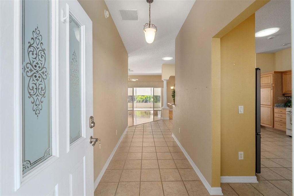 This prestine 3/2 Camellia Designer (like a Gardenia) is located in The Village of Liberty Park. As you drive up, you will notice the American Flag in the front yard, the great curb appeal and the painted driveway and walkway. As you enter the home, you will notice the volume ceilings and laminate flooring in the living room and dining room and ceramic tile in the kitchen and wet areas. The primary bedroom has laminate flooring and the 2 guest rooms have carpet. The third bedroom has a murphy bed but does not have a closet. The kitchen has a white range, dishwasher and microwave but the fridge is stainless. There is also a gas range, granite countertops and tiled backsplash. The dining room has a built-in buffet with a granite countertop. There are solar tubes in the kitchen and living room. The living room looks out through the glass sliders onto the screened lanai which is also painted like the driveway. The lanai is stretched 2 feet to the rear and the shades and landscaping gives lots of privacy. The primary bedroom has dual walk-in closets. There is sliders from the primary bedroom to the lanai. The primary bathroom has dual sinks and a step-in shower. The laundry is located inside the home with extra cabinets and a utility sink, the washer and dryer are included. There is a 2 car garage and the water filtration system is included AS-IS. The garage also has pull down stairs and raised trusses in the attic for storage. Centrally located in The Village of Liberty Park close to pools, restaurants, golf courses, recreation centers, shopping and entertainment. Roof 2021, HVAC 2016, Water Heater is original. Taxes $2,306.47, Maint $401.34, Fire $320.71, Bond Payment $854.81 Annually and the Bond Balance is $5,153.14.