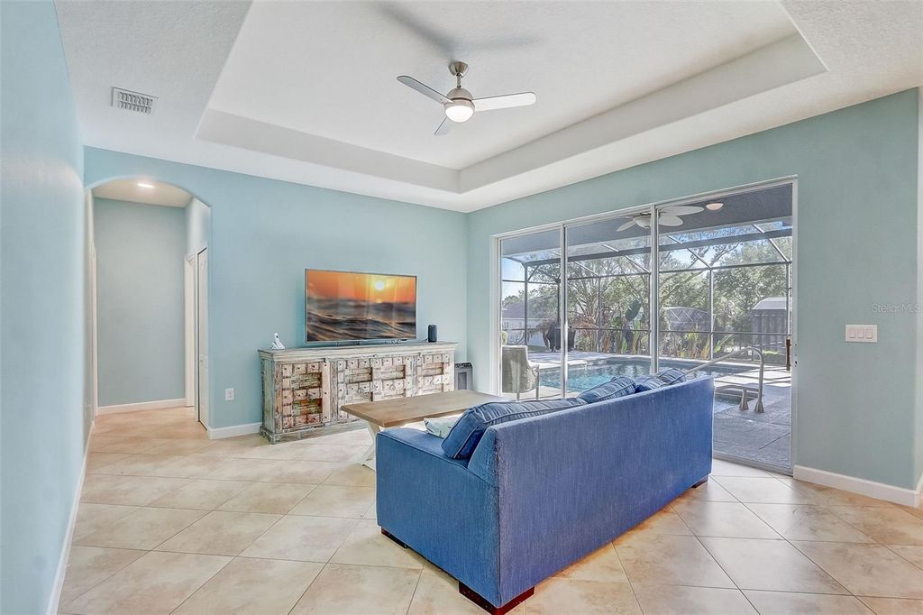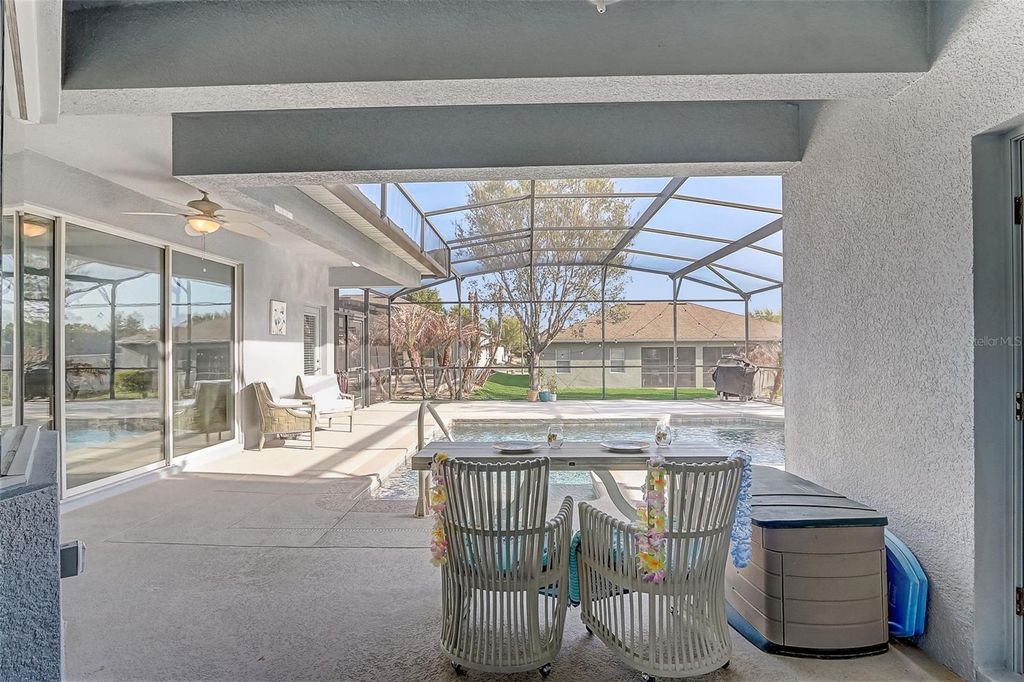 Put the Snow shovels AWAY!! Time for Resort Life in carefree secure 55+ community. Enjoy the good life beside your own private heated pool. Entertain in this beautiful 4 bedroom and 3 bath home. Freshly painted inside and out and 1 yr. old roof. This will be the destination for family and friends. The open concept floorplan that opens to the pool from the primary suite, living room and family room. No tracking through the house in wet swimsuits, the second bath opens to the pool deck. Fresco dining and the changing of the color pool lights will be memorable times. Put on your dancing shoes, it time to dance in the clubhouse ballroom. Great fun to be had indoor at the game room, arts and crafts, the gym or outside in the heated Olympic size pool. Tennis and so much more. The next best thing to a golf community is having several golf courses within 5 min. of home. Clermont has restaurants and lake side dining and entertainment. The National training center has Olympic size pool, gym, classes, therapy and more across from the Orlando Hospital. There are hiking and bike trails along with regular competition events. But finally your dog with love you as you walk the Heritage hills community paths and go to the doggie park. Take an evening stroll and watch the Disney firework from a distance at the overlook park.