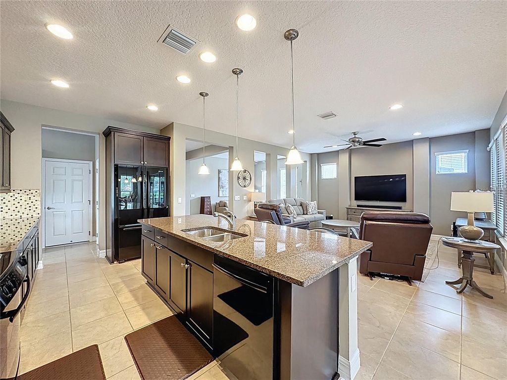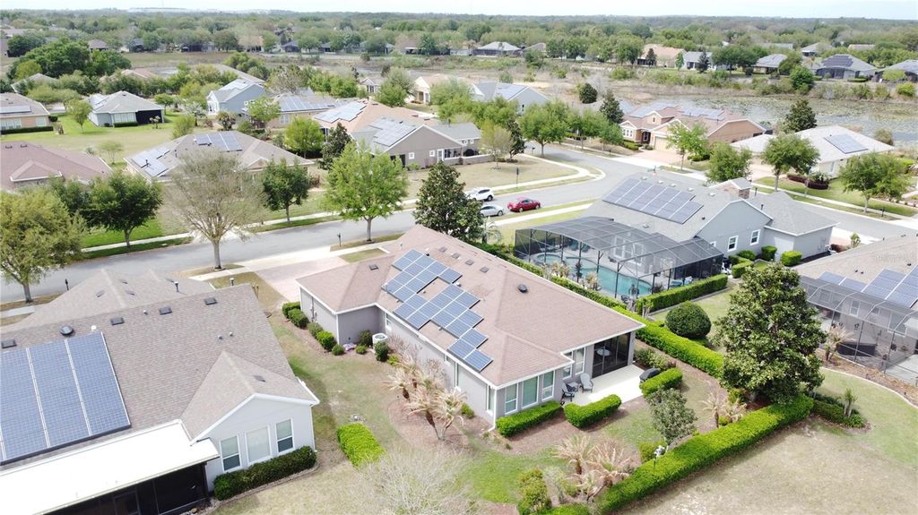 Standout home located just through the gate on the coveted "Island," an exclusive enclave of only 70 homes surrounded by mature trees and lush landscaping. From the moment you arrive, the great curb appeal is undeniable, with a welcoming front porch and an oversized homesite that sets this property apart. Unique features include a 3-car garage, an impressive 40-foot brick-paver driveway, and Tesla Solar with a recently replaced full system. The 20-year lease transfers at no cost to the buyer, delivering immediate energy savings and added efficiency. Inside, the home offers an inviting and well-designed layout with granite countertops, Jenn Air appliances, and a spacious Great Room that seamlessly connects to the outdoors through a dramatic glass rolling wall, opening to the covered lanai and creating the perfect indoor-outdoor living experience. A formal dining room adds to the home's functionality and charm. The primary suite is a private retreat featuring an ensuite bath with separate sinks, a walk-in shower, private Commode, Garden tub, and a walk-in closet with built-in features. A special highlight of this home is the smart space, offering an abundance of cabinets and counter space, thoughtfully designed with two desk areas ideal for hobbies, crafts, or a home office setup. The split floor plan provides privacy for both owners and guests, with a separate secondary bedroom and bath tucked away from the primary suite. The bonus room for whatever you need it to be. The Perks: This guard-gated, resort-style community offers more than just home, it delivers a lifestyle! The HOA covers cable, high-speed internet, security monitoring, and landscaping/ lawn care so you can focus on enjoying your time. At the heart of it all is the spectacular 57,000 sq ft Magnolia House, where you'll enjoy Member-exclusive restaurant and bar with live entertainment. Indoor/outdoor heated pools & a state-of-the-art athletic club Artisan studio, poker room, culinary kitchen, and creative spaces. Sports courts for tennis, pickleball, bocce, billiards & virtual golf,50+ active, member-led clubs for every hobby and interest. A show-stopping Event Center with a stage and professional AV setup. This isn't just a home, it's a lifestyle upgrade where you'll find connection, wellness, excitement, and belonging every day. Conveniently located 45 minutes to Theme Parks including Universal and Disney World and Orlando International Airport, 1 ½ hour to Beaches and Port Canaveral Cruise Terminal. This isn't just a home "” it's a lifestyle upgrade. Live your BEST LIFE at Trilogy!