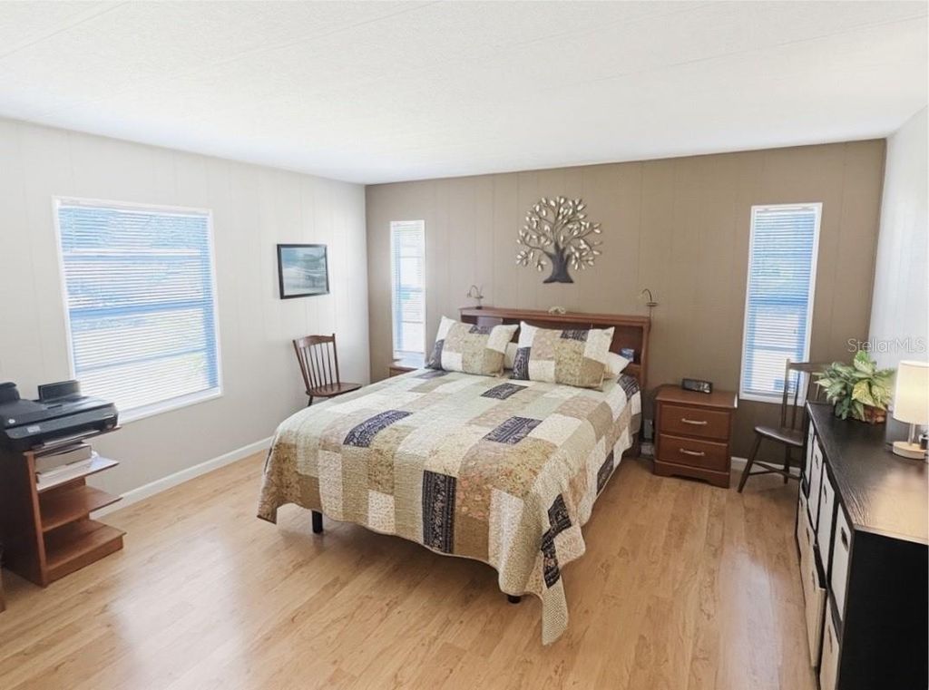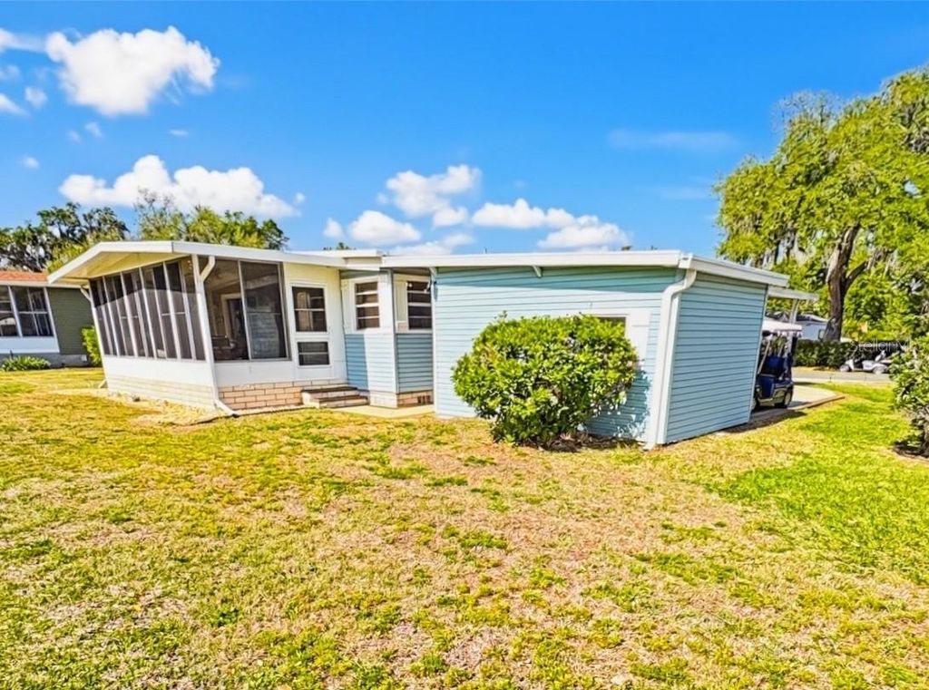 Welcome to your perfect golf course retreat! Ideally situated directly off the 4th green, this home offers breathtaking panoramic views that you can enjoy from nearly every angle. Whether you're sipping your morning coffee or unwinding at sunset, the scenery is simply unmatched. The home comes completely furnished!!! Step inside to discover a beautifully designed open floor plan, featuring a newly renovated kitchen that seamlessly overlooks a bright, airy, and spacious family room"”perfect for entertaining or relaxing in comfort. The home boasts two generously sized bedrooms and two tastefully updated bathrooms, offering both style and functionality. Elegant laminate flooring runs throughout the home, adding a clean and modern touch. Outside, you'll find a large carport along with a dedicated golf cart garage and a versatile storage shed/workshop"”ideal for hobbies or extra storage. One of the standout features is the expansive rear lanai, where you can soak in the stunning golf course views year-round. Additional upgrades include spray foam insulation and a vapor barrier for enhanced energy efficiency and comfort. Also, the water heater and heat pump are new. As an added bonus, the golf cart is included in the sale, making it easy to embrace the golf course lifestyle. All appliances convey with the home, including a brand-new washer and dryer"”making this property truly move-in ready. Don't miss this rare opportunity to own a slice of paradise right on the green! The community is absolutely gorgeous with countless amenities, which include: large swimming pool with hot tub, 18 hole championship golf course, driving range and putting greens, shuffleboard, tennis, pickle ball, fitness center, iibrary, billiards room, softball field, and a 5 star restaurant and lounge. What more can you ask for? This is a beautiful home in a beautiful community. You won't be disappointed!!!