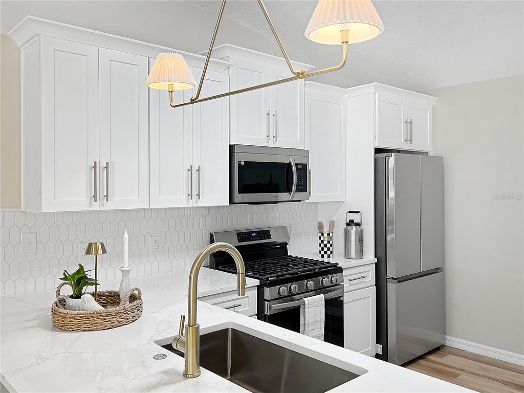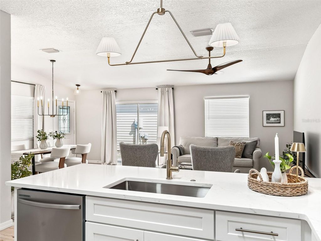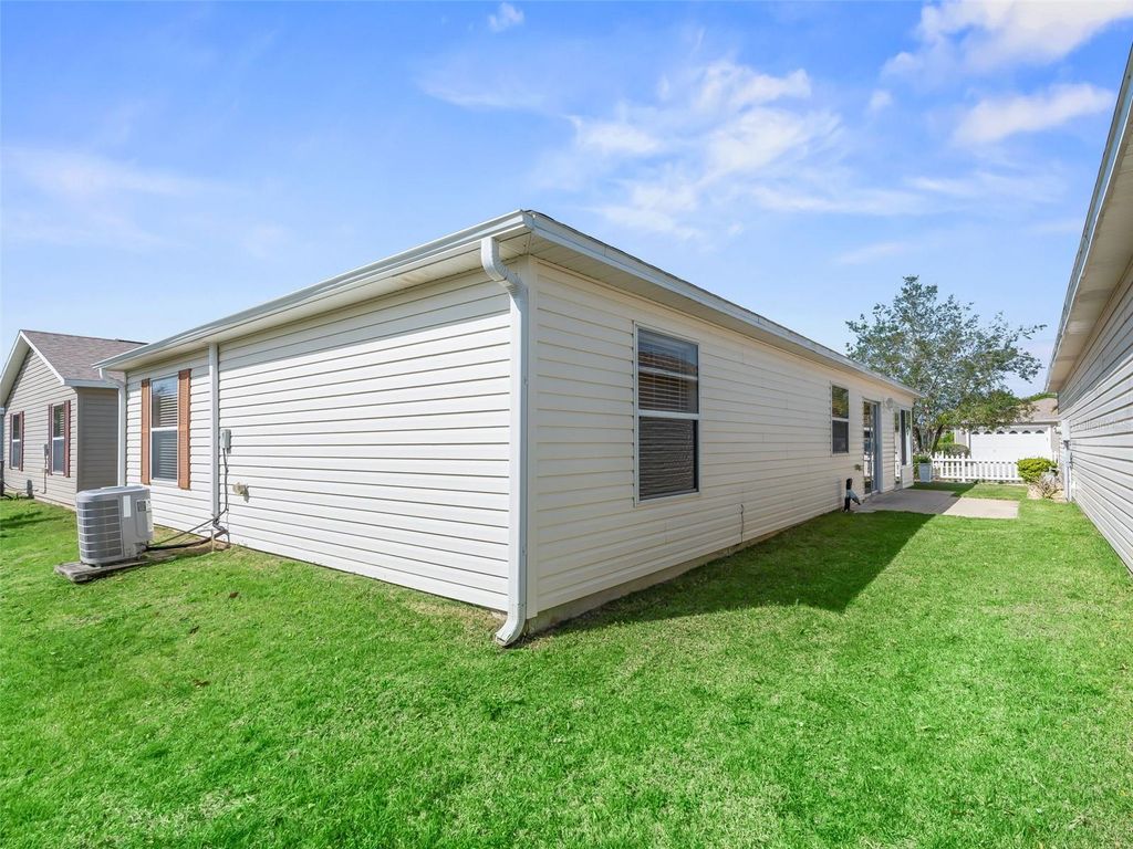 BOND PAID "¢ BETWEEN THE 66's "¢ NEWLY UPATED...Welcome to Completely Renovated Colony Villa in the highly sought-after Village of Caroline"”just a 4-minute golf cart ride to Lake Sumter Landing Market Square! Perfectly positioned between the 466's, this move-in ready home offers the ideal blend of modern style, comfort, and unbeatable convenience. Step inside to a bright and open floor plan featuring volume ceilings, neutral custom paint, and elegant HAND-TROWELED ceilings. Luxury Vinyl Plank flooring flows throughout the home"”NO CARPET"”complemented by all-new designer light fixtures for a clean, contemporary feel. The stunning, fully updated kitchen is a true showstopper, boasting 36" staggered white shaker cabinetry, QUARTZ countertops, stainless steel appliances, a large undermount single basin sink with a gold faucet, and a custom tiled backsplash. The spacious primary suite offers a relaxing retreat with a large walk-in closet and a beautifully renovated en-suite bath featuring a CUSTOM TILED WALK-IN SHOWER with frameless glass doors and a quartz vanity. The interior laundry is conveniently tucked away in a private kitchen closet. Major updates provide peace of mind, including a new roof (2020), HVAC (2023), and water heater (2026). Enjoy year-round relaxation in the enclosed front lanai with glass windows (2023), creating a private and versatile space. Located just 0.2 miles from the Caroline Recreation Center for your Adult Pool. The Village of Caroline is known for its close location to the Mallory Hill Country Club and Lake Sumter Landing for nightly entertainment, you'll be surrounded by everything The Villages lifestyle has to offer. With recreation, golf, shopping, and dining all nearby, you'll never run out of things to do! This beautifully updated villa offers the ultimate Villages lifestyle"”don't miss this rare opportunity!