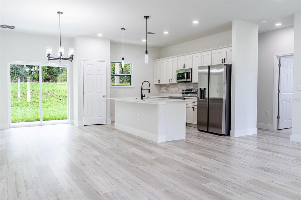 GREAT WEST SIDE LOCATION! This beautiful MOVE-IN READY new construction home is contemporary and stylish, with the features that you want. Come check out the OPEN CONCEPT, SPLIT BEDROOM floor plan with a large COVERED LANAI and HUGE PRIMARY SHOWER with 2 separate shower controls! The living space is open and great for entertaining. The ceilings are high throughout the home, making all the rooms feel huge. Primary bedroom is located at the rear of the home behind the garage, and the other bedrooms are across the entertaining area on the opposite side of the house. The kitchen features QUARTZ countertops, SAMSUNG stainless steel SMART appliances, and a breakfast bar. Sliders in the dining room give access to the covered lanai. Schedule your appointment to see this one soon!