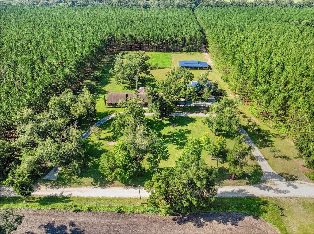 Welcome to your private paradise! This custom-built home offers expansive living areas and oversized bedrooms, designed for both comfort and style. The luxurious master suite features an oversized shower, dual vanities, his-and-her closets, and private entries"”creating a spa-like retreat. The open-concept layout flows seamlessly for modern living and entertaining. Set on just under 23 acres of secluded, picturesque land, the property is adorned with luscious landscaping including fruit trees, lavender and anchored by a majestic, 8 sprawling pecan trees that produce, offering a peaceful, park-like atmosphere. The all-tile interior means easy maintenance with no carpet anywhere in the home. A roundabout driveway adds convenience and curb appeal. Additional highlights include a whole-house water filtration system, one brand new HVAC unit, and a second that's just a year old. The land offers income potential through annual pine straw collection and timber harvest readiness in three years. With agricultural zoning for tax benefits and two powered outbuildings for storage, work, or hobbies, this exceptional property is as practical as it is beautiful. Whether you envision building a pool, hosting unforgettable gatherings, or simply enjoying the serenity of nature, this one-of-a-kind estate has it all. Don't miss your opportunity to own this rare gem! Call today to schedule your appointment or reach out for a video tour!