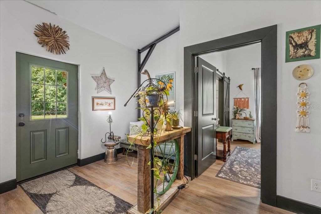 2023 Industrial style custom farm house with copper metal roof on gorgeous 9.92 acres , located on a paved road just before 3 acres of push pastures in the front perfect for horses and gorgeous mature pines with a dream like private drive to showcase this gorgeous custom home. This home is a dream! 2 master bedroom suites with 2.5 bathrooms and a gorgeous open floor plan. This home has an additional 600 sqft concrete pad with footers ready for additional space if needed. Home currently is 1500 H/C sqft of perfection. As you enter the home you will fall involve with the industrial style beams throughout , high end finishes and amazingly unique decorating taste. The kitchen is perfectly tasteful with a Mexican style flare, Mexican tile throughout kitchen with butcher block and granite countertops as well as stainless steel appliances. Laundry room is oversized and spacious and offers an exit in the back yard. Gorgeous LVP flooring throughout the whole home with a double mini split system as well as 2 additional mini splits offering extremely LOW and energy efficient power bills. 10-14 foot high ceilings with closed cell foam insulation makes this home top tier energy efficient. Each master suit is oversized with beautiful light and a view of the quiet countryside. Each bathroom offers custom tile work throughout with gorgeous custom vanities. Windows are dual pane with deep antique brick window sills. Outside it's a mini farm dream. Around the home is fenced perfect for your pets to roam, while the yard can be used for the geese and chickens to free range. Two storage sheds are offered with a 40ft shipping container perfect for storage as well as chicken coop and more. This property offers privacy as the home is quietly tucked behind the pines offering the two pastures in the front open for your horses and donkeys. This property was perfectly build and curated with love and care , no expense was spared. Call today for YOUR tour!