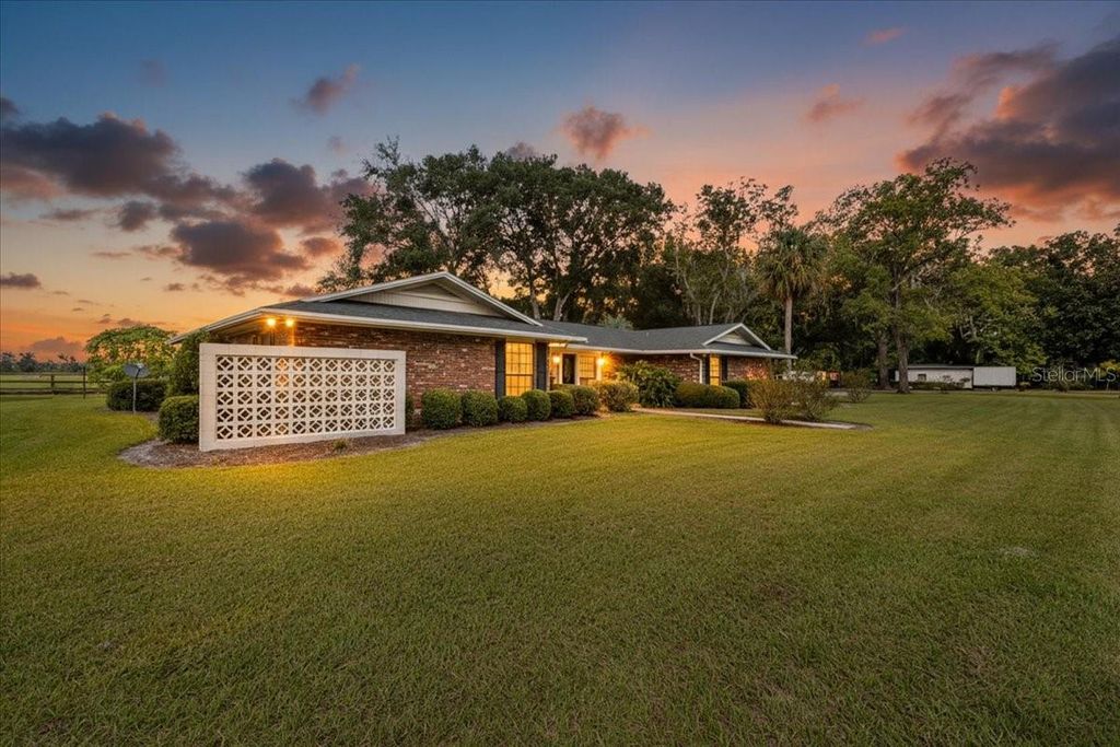 Located in the heart of Chiefland Florida you will find this Concrete Block , Antique Brick home (some bricks actually used from torn down chimneys generations ago) massive 4 bedrooms, 2.5 bathrooms , 2 car garage , huge screened porch on 5 gorgeous acres that is freshly fenced and cross fenced WITH a massive barn, cow pins , storage buildings and a feed room. If having a farm, cutting hay, planting a garden and more is a dream you've been having, then look no further .This home has been loved for many generations and it is now time to share the craftsmanship and love to a new family. Located just a few miles to town this home offers privacy and seclusion yet convenience to our local Golf and County Club, Manatee Springs State Park and The Great Suwannee River. As you enter the private paved driveway you are welcomed to the custom 2 car garage as well as detached carport, as you enter the home you will see a bright open floor plan with a gorgeous view of the pasture out back on patio. In the living room there is a gorgeous wood burning fireplace with real stone accents. A dinette sitting area, a nice open kitchen loaded with real wood custom cabinetry with a gorgeous stone wall, immaculate appliances some of which are kitchen aide. A large formal dining room with nostalgic wall paper perfect for entertaining or family holiday gatherings, with a half bathroom perfect for all guest. Down the hallway you will see the oversized master bedroom with master bathroom with walk in shower. Each guest bedroom offers ample space and guest bathroom has a combo tub /shower. You will not hear ANY outside noise as this home is SOLID with dual pane energy efficient windows and added 8 inch insulation ensuring very low energy bills. Clothing closest in the home are cedar lined hand cut by the owners grandfather many years ago. Through the sliding glass doors you can enjoy the oversized screened porch with nostalgic terrazzo flooring and the gorgeous view of the pastures out back. This property has multiple septic tanks, multiple wells (perfect for gardening or animals) , multiple power poles (with RV set up) perfect for that added family member. The massive barn is perfect for your tractor , UTV's, boat and more with a 200 amp box you can do pretty much anything in this barn. On the right side you have several stalls leading to the cow pin and on the left you have bays for storage. Also 2 additional concrete block buildings perfect for storage, workshop or keep the one room as a feed room. What was one a family homestead is now sectioned and ready for its new family to create many new memories on the farm. Enjoy the slow pace ,peace and quiet of the countryside of Chiefland Fla. Accepting ALL loans, call today for your personal tour!