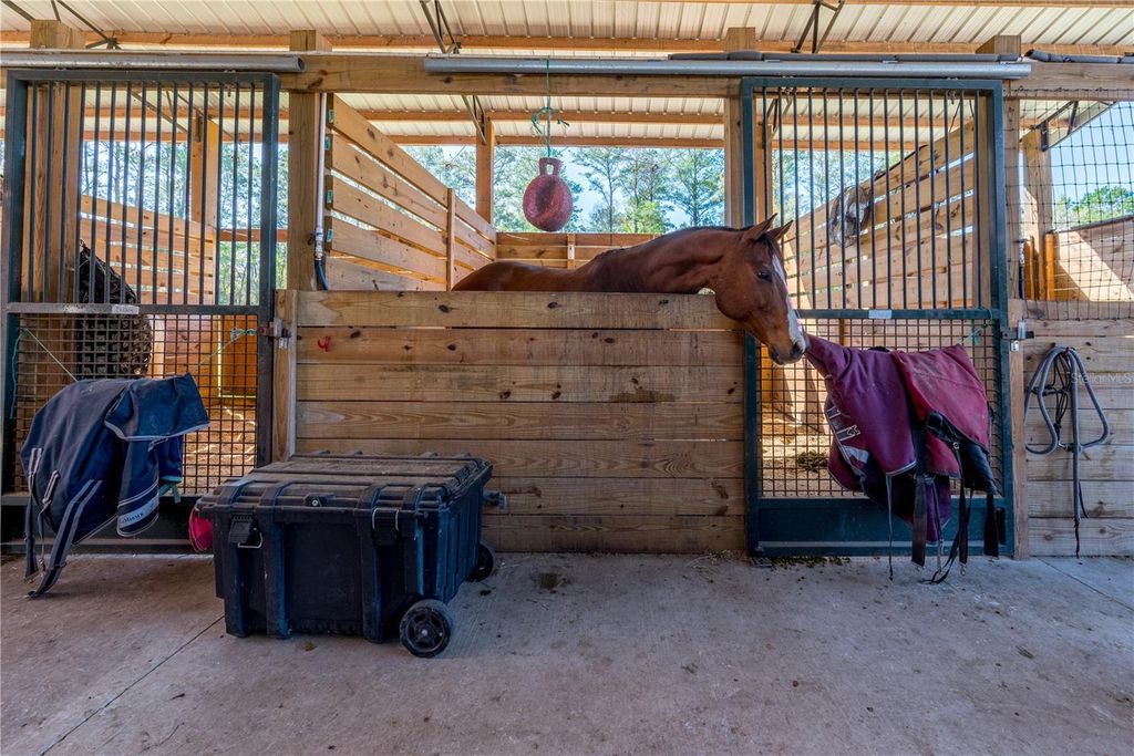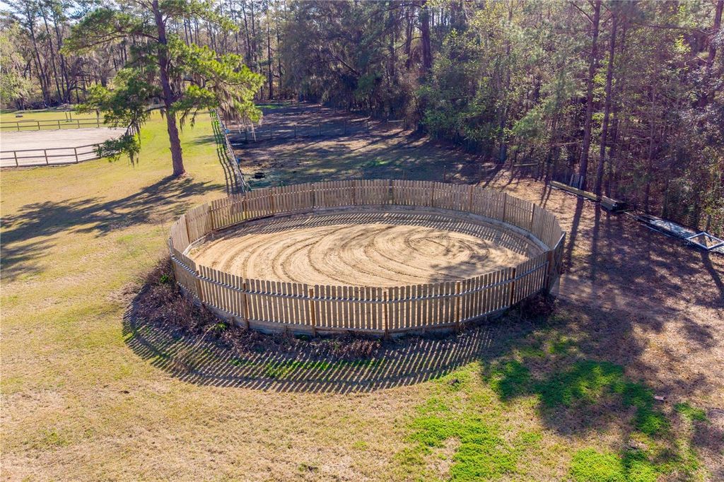 18+ acres tucked away on a private road offering peaceful farm living in a prime equestrian location. The property features a 3-bedroom, 2-bath home and is conveniently located near Williston, Gainesville, and Ocala"”approximately 16 miles from the World Equestrian Center and just up the road from HITS Ocala. It is also close to Barnstaple South and Majestic Oaks, and conveniently located near several equine feed and supply stores, placing you in the heart of Florida's horse country. The land showcases classic Florida beauty with towering 300-year-old oak trees, pecan trees, fruit trees, and tree-canopied driveways, along with beautiful sunrise and sunset views. Gentle rolling terrain adds natural character to the landscape, while much of the property offers natural shade. The soil provides a solid clay base with sandy areas that support great grass for horses. A seasonal pond is located on the property and could be relined to hold water year-round. Designed with equestrians in mind, the farm includes 12 paddocks, 7 oversized stalls, a center-aisle barn, riding arena, and round pen, along with two wash racks, tack room, feed room, hay room, and additional storage for equipment and tools. A 50-amp hookup is also in place, and the paddock layout allows for flexible horse management. This well-equipped property offers an excellent opportunity for a private training facility, boarding operation, or personal horse farm in one of the most desirable equestrian areas of North Central Florida.