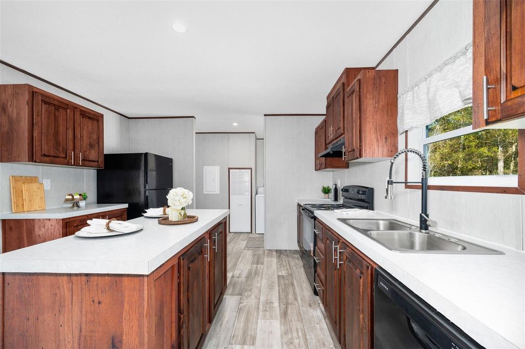 Welcome home to this brand-new 2025 Live Oak Sprinter manufactured home, offering modern comfort and peaceful country living on large wooded lot in beautiful Bronson, Florida. This spacious home offers approximately 1,500 square feet of living space, featuring 3 bedrooms and 2 full bathrooms with an open, functional layout perfect for everyday living. The kitchen is equipped with brand-new appliances, including a refrigerator with icemaker, new stove and range, and a new dishwasher. A washer and dryer, NEWER, are included for added convenience. Inside, you'll find durable laminate vinyl plank flooring throughout, creating a clean, contemporary feel while being easy to maintain. The open living and dining areas flow seamlessly into the kitchen, providing plenty of space for entertaining or relaxing with family. The primary suite includes a private bath. Step outside to an 8' x 16' wooden deck, overlooking the backyard"”an ideal space for morning coffee, grilling, or enjoying Florida evenings. The property features fresh sodding around the perimeter, creating a clean, finished outdoor appearance. Photos are from Previously sold home. Same Floorplan.