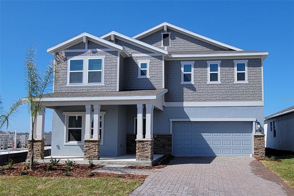 Almost NEW, one year old, large 4-2.5 home, with bonus den/office, boasts 2781sf At Wellness Ridge of 27 in Clermont. From the large covered front porch, the back covered lanai, this home provides you tons of space in a well laid out floor plan. This Allison model is a beautifully designed home with great architectural finishes make this large front porch very inviting. Upon entry, you will pass the bonus den/office with wood plank styled ceramic tiled floor that carries through to the main living open concept, kitchen, dining, family room. The kitchen provides a walk-in pantry, white cabinets accented with crown molding and tons of counter space on the beautiful grey stone, all stainless-steel appliances, and an island with sink and breakfast bar overlooking the large dining and family room combo. Many windows for natural light and slider to the covered lanai to enjoy the outdoors and new decorative block wall along the backside. Near the stairs is the half bath powder room. At the top of the stairs, you are greeted by a wide hall for access to all 4 bedrooms and laundry room. The primary bedroom/bath suite provides a large bath with dual sinks, huge walk-in shower, separate toilet room and massive closet for your fashion enthusiast. From the closet, you can also enter the laundry room from the back for easier access. The other 3 bedrooms all share a hall bath designed for maximum use space with linen closet, wide dressing area with dual sink vanities, and separate room for tub and toilet for more privacy. 2 car garage and large yard. The lawn care mowing is provided. Wellness Ridge is a community designed to provide a Healthy & Active Lifestyle. The community has a very nice playground and picnic area. There are plans to soon start the resort styled swimming pool, clubhouse, fitness center, sports courts, Conservation Areas, and multi-use trails. Wellness Ridge is strategically located right off the access connection points between route 27 and 429 in Winter Garden. This provides fast and easy access to shopping, restaurants, hospitals, schools, etc. in both Clermont AND Winter Garden; both communities among the fastest growing in Florida. You can enjoy the areas picturesque hills and pristine lakes and the well-known Lake Louisa State Park. High Speed Internet & landscaping included in monthly rent!