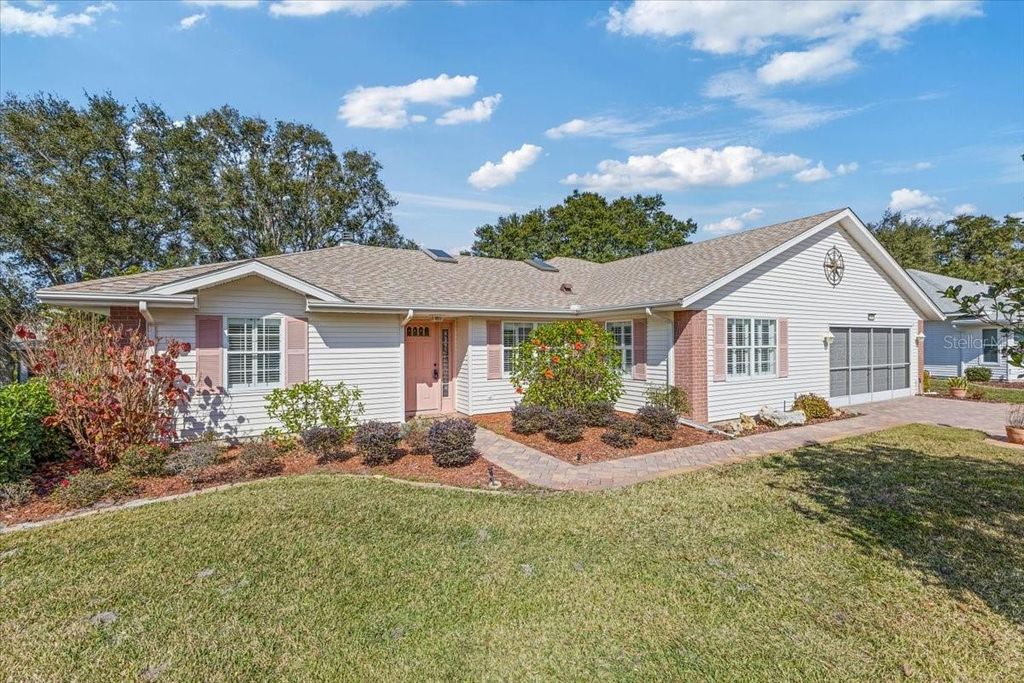 Welcome to this stunning 3-bedroom, 2-bath home in the highly sought-after Highland Lakes community! From the moment you arrive, you'll be captivated by the upgraded brick paver driveway and walkway, enhancing the curb appeal of this beautifully maintained property. Inside, enjoy a spacious split floorplan with vaulted ceilings, updated laminate flooring in the great room, dining, and hallways, and extensive ceramic tile in the kitchen and large covered lanai"”perfect for relaxing or entertaining. A new roof (2020) adds peace of mind! The kitchen is a chef's dream, featuring Corian countertops, a gas stove, a new microwave, plenty of cabinet space, under-mount pull-out drawers, and an added pantry with deep pull-out drawers for extra storage. The large dinette area includes a built-in bench with additional storage on each side! Enjoy the gated community's incredible amenities, including two pools, a clubhouse, a driving range, a pool table, a library, tennis courts, a gymnasium, pickleball, and even golf carts are allowed!! All of this with an extremely low HOA fee.