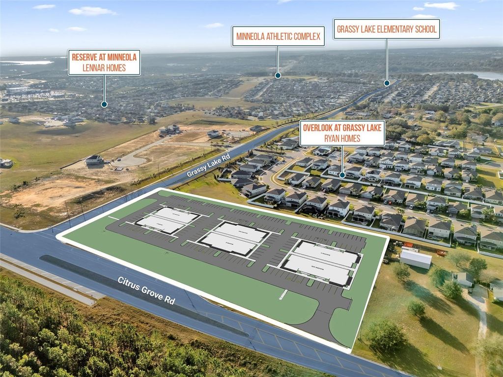 Pre-Construction. To be built. FOR LEASE - PRIME NEW CONSTRUCTION MEDICAL & PROFESSIONAL OFFICE SPACE IN MINNEOLA, FL High-Growth Location | Flexible Space Options | Exceptional Accessibility Be part of the future in Minneola, one of Central Florida's fastest-growing markets! This brand-new commercial development offers premium medical office, retail, and professional office spaces with high visibility, unmatched convenience, and prime positioning in the heart of Minneola's booming residential and commercial expansion. Property Highlights: Strategic Location & Unmatched Accessibility - Less than 1 mile from Florida's Turnpike via the new Hancock exit - 3-minute drive to AdventHealth's new hospital and Crooked Can Brewery's upcoming 40,000 SF facility - Located at the signalized intersection of Grassy Lake Rd. & Citrus Grove Rd. (traffic light installation coming next year) - Surrounded by new residential developments fueling strong demand for medical, retail, and professional services Quick access to major roadways - 1 min to Florida's Turnpike - 8 min to Hwy 50 - 14 min to FL-408 - 22 min to I-4 and Downtown Orlando - 30 min to Orlando International Airport - 40 min to The Villages Brand-New Class A Office & Retail Space - Six standalone buildings, each up to 5,140 SF - Suite sizes range from 1,207 SF to 5,140 SF, allowing for customizable layouts - Commercial zoning allowing a wide variety of medical, retail, and office uses - Fire sprinklers in all buildings for enhanced safety and compliance - Shell delivery in Q1 2026, providing ample time for tenant build-outs - Tenant improvement allowances available, allowing customization to meet business needs Superior Visibility & Tenant Signage - Facade and monument signage available for prime branding exposure - High-traffic location at an intersection in a growing medical and retail corridor Ample Parking & Tenant Convenience - Parking ratio of 5.9/1,000 SF, ensuring ample parking for patients, employees, and customers Explosive Market Growth & Strong Demographics - Population set to double in the next 5 years - Median household income: $100,000+ - Median age: 37, an ideal demographic for medical and professional services - Average household size: 3.09, supporting strong demand for local healthcare and business services Why Choose This Location? With rapid residential and commercial growth, excellent connectivity, and a strong demand for medical and professional office space, this development is a rare opportunity to establish or expand your business in a high-traffic, high-income market.