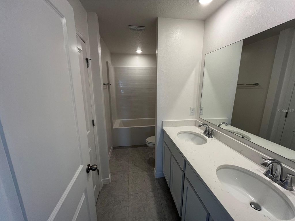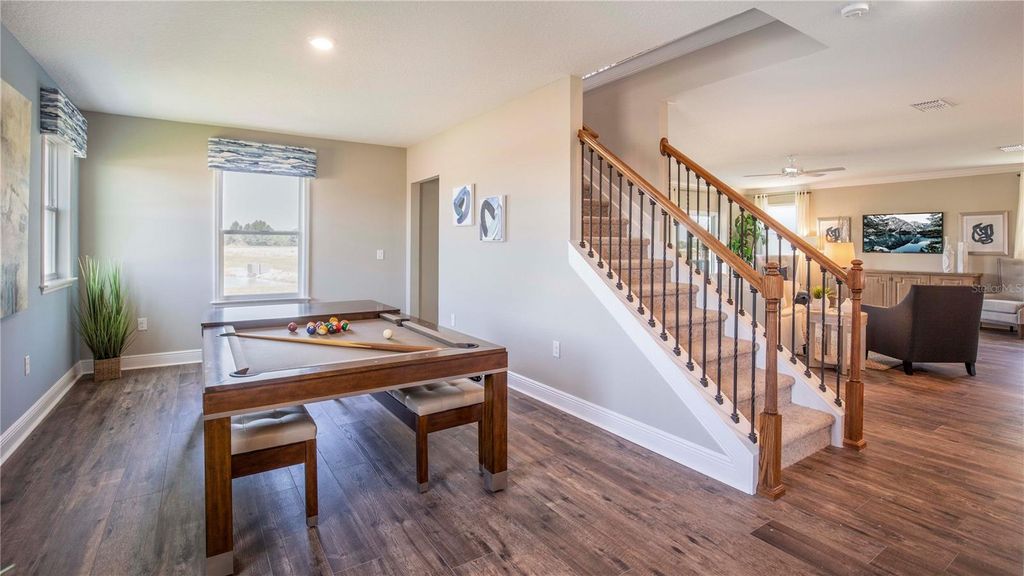 Move in Ready! Welcome to Villa Pass, a vibrant community where comfort meets style and every detail is designed for the perfect Florida lifestyle. This beautifully crafted two-story home offers the ideal blend of modern features, flexible spaces, and lasting quality, located on a desirable corner lot. Step onto the paver entryway and through the inviting front door into a home that immediately impresses. The elegant foyer opens to a spacious great room with sliding glass doors leading to the patio"”perfect for indoor-outdoor living. A generous dining/game room and a flexible den or office space provides room to live, work, and entertain. A convenient half bath adds to the thoughtful first-floor layout. The heart of the home is the open-concept kitchen, featuring quartz countertops, 42" cabinets, and upgraded stainless steel appliances"”including the refrigerator"”all designed to inspire your inner chef. Elegant ceramic tile flooring spans the entire first floor, adding both style and durability. Upstairs, discover four spacious bedrooms, a versatile loft, and a large second-floor laundry room complete with washer and dryer for everyday convenience. The luxurious primary suite features a walk-in closet, sitting area, and a spa-like en suite bath with dual sinks, walk-in shower, and a private water closet. Smart storage solutions include multiple linen closets, under-stair storage, and a dedicated workshop area in the two-car garage. The home is topped with architectural shingles, combining curb appeal with long-lasting protection. Enjoy peace of mind and modern ease with built-in smart home features, including a Z-Wave thermostat, video doorbell, keyless entry keypad, and front door light. Additional highlights include a garage door opener, paver driveway and entry, and a full irrigation system to keep your landscaping lush year-round. This home will be ready by summer, giving you the perfect opportunity to make it your own. Plus, it comes with a full builder warranty, offering extra confidence in your investment. Don't miss your chance to own this exceptional home on a corner lot in Villa Pass"”schedule your private tour today!