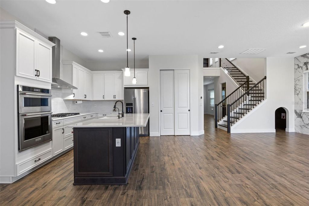 Welcome to the pinnacle of refined living in the exclusive gated community of Bella Collina. This distinguished 4-bedroom, 3.5-bath golf course residence showcases timeless features and tasteful upgrades throughout the dining room, kitchen, primary suite, and staircase. Upon entering, you're greeted by an abundance of natural light, soaring ceilings, and upgraded luxury vinyl flooring that flows seamlessly throughout the home. The main living area features an open-concept design, seamlessly blending the family room, kitchen, and dining room"”all offering stunning views of the golf course. The kitchen is a chef's dream, boasting shaker cabinetry, quartz countertops, a stylish backsplash, luxury appliances, a gas cooktop, and ample space for all your culinary needs. The dining room comfortably accommodates eight, perfect for entertaining friends or enjoying family meals. The primary suite, conveniently located on the first floor, offers a spacious retreat with a walk-in closet, built-in features, and a spa-like ensuite with dual vanities, upgraded countertops, a soaking tub, and a large walk-in shower with a rain feature. Ascend the beautifully designed staircase to discover a large loft with built in custom features, three additional bedrooms, and two more bathrooms, including one bedroom with an ensuite. All bedrooms feature fully built walk-in closets. Outdoor living is taken to new heights with a fully custom outdoor kitchen, with a size able back yard big enough for a pool and is already fully fenced. The Club at Bella Collina offers upscale amenities, including spa facilities, a full-service fitness center, and a member-exclusive restaurant serving breakfast, lunch, and dinner daily. Nestled between Lake Apopka and Bella Collina's own spring-fed Lake Siena, the Sir Nick Faldo-designed championship golf course boasts impressive views with dramatic elevation changes and undulating greens. Located just a short drive from the magic of Disney, the vibrant atmosphere of International Drive, and premier shopping at Millennia Mall, this home offers convenience paired with quality. Montverde Academy, a world-class educational institution known for its commitment to academic excellence, is also less than three miles away. Discover the perfect blend of sophistication and functionality in this meticulously crafted home, offering both comfort and style. Schedule a private viewing today and make this your retreat in the heart of convenience.