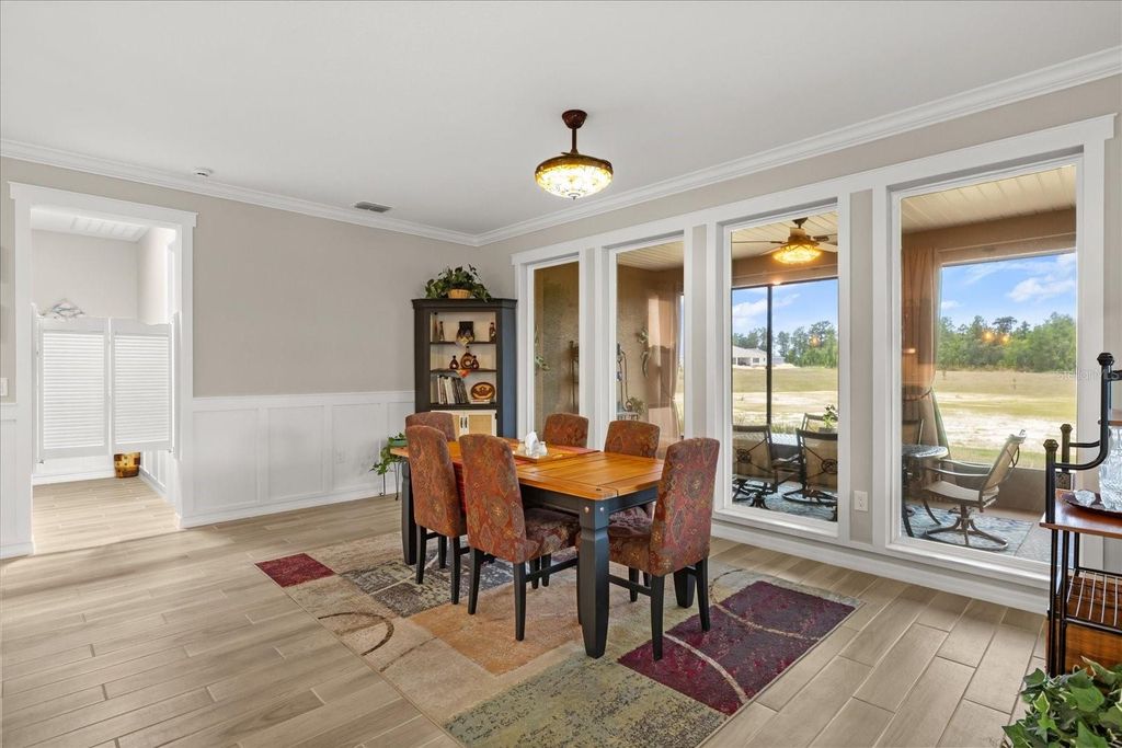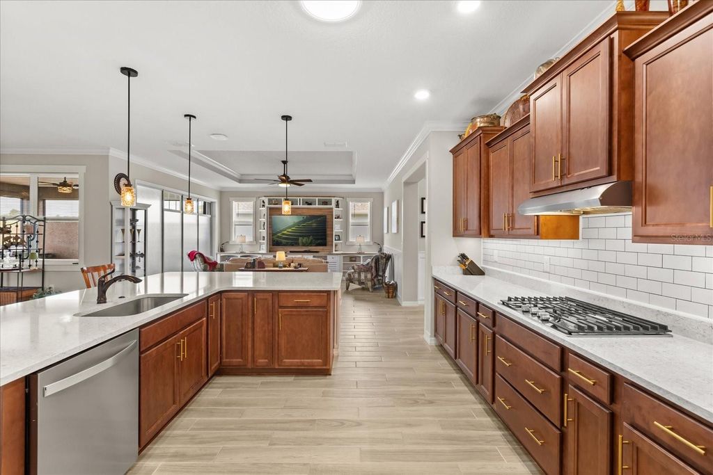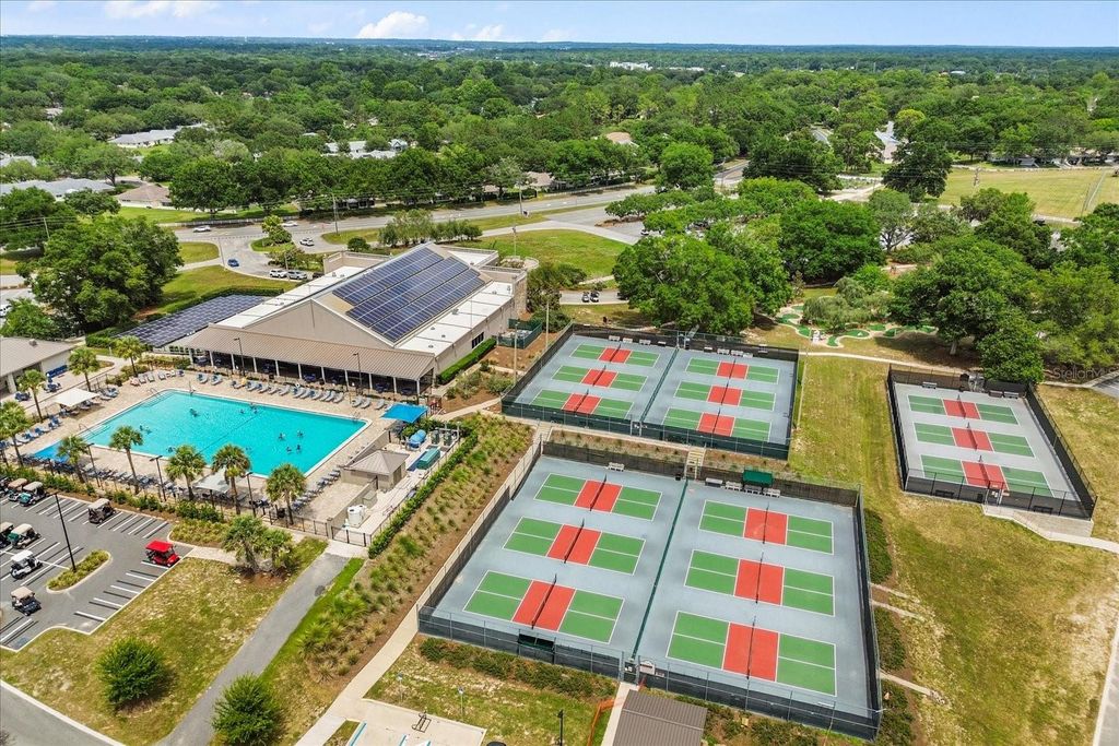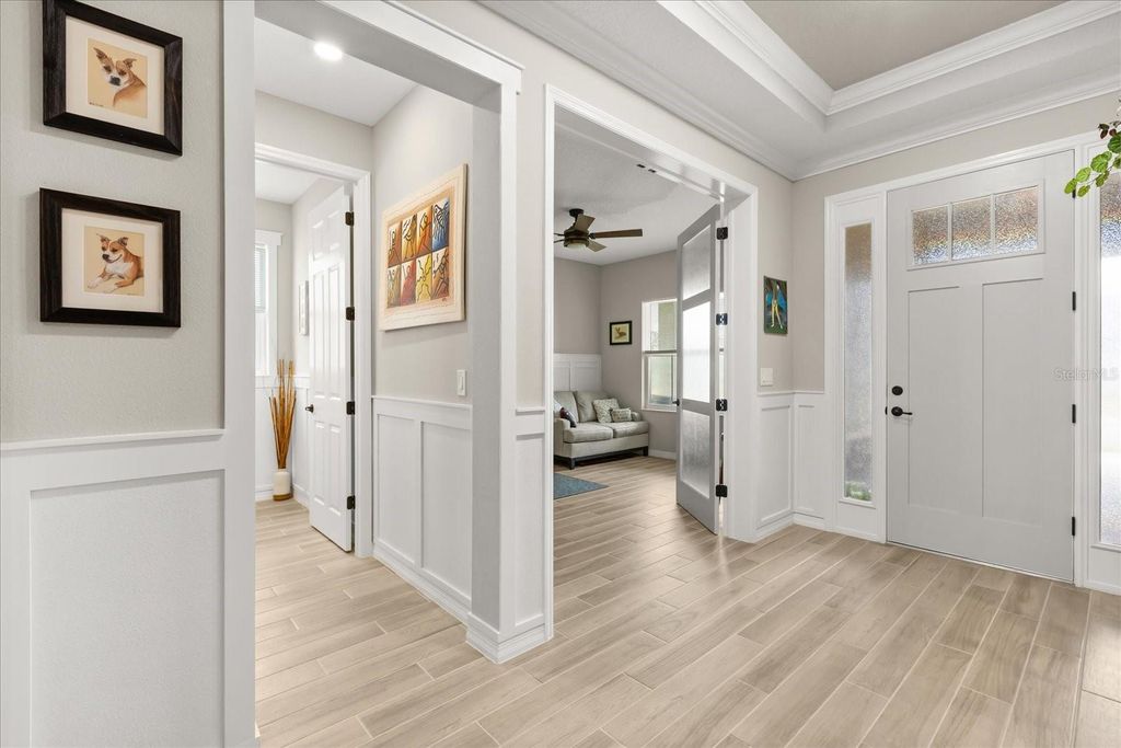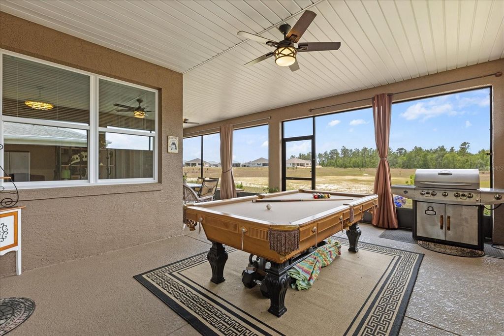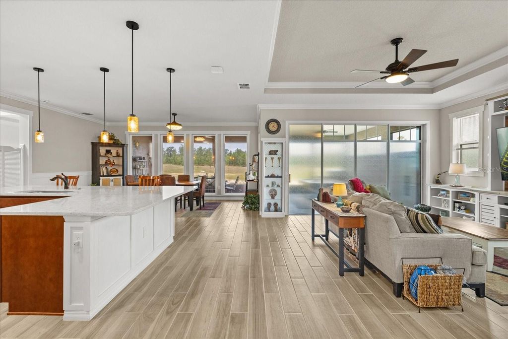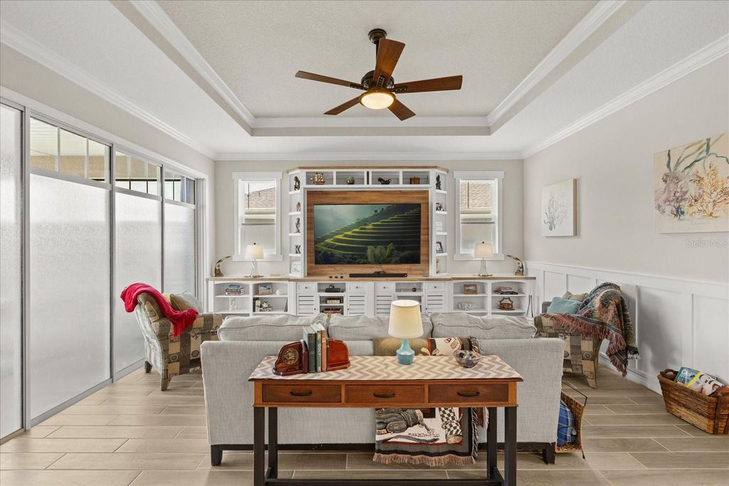 This "Premier Series" custom Magnolia model boasts two large en-suite bedrooms and an additional half bath. Custom features include a built-in entertainment center, board and batten trim, elegant quartz countertops, and a premium retention lot"”along with many other upgraded finishes. Built in 2023, this modern residence offers the perfect blend of comfort, elegance, and contemporary style. The light-filled, open-concept floor plan seamlessly connects the family room, dining area, and kitchen"”ideal for both everyday living and entertaining. High tray ceilings, solar tubes, and large windows allow abundant natural light, enhancing the home's bright and airy atmosphere. The kitchen features elegant quartz countertops, modern appliances, and ample counter space. Additional highlights include a covered front porch, a spacious primary suite, a split floor plan for added privacy, a flex room (ideal for an office), and a den (perfect as a hobby or craft room). The expansive lanai is perfect for morning coffee or hosting guests. The home also includes a 2-car garage plus a golf cart garage, offering secure parking and excellent storage. Located in a desirable neighborhood, this property offers both privacy and convenient access to major highways and everyday amenities. Residents enjoy a wide range of community features, including pickleball and tennis courts, mini-golf, dog parks, community gardens, pools, fitness centers, clubs, and an archery range. Whether you're an active lifestyle enthusiast or someone who values peaceful surroundings, this community has something for everyone. With its thoughtful design, high-end finishes, and move-in-ready condition, this home is truly a rare find. Don't miss your opportunity to experience the best in modern living"”make it yours today!