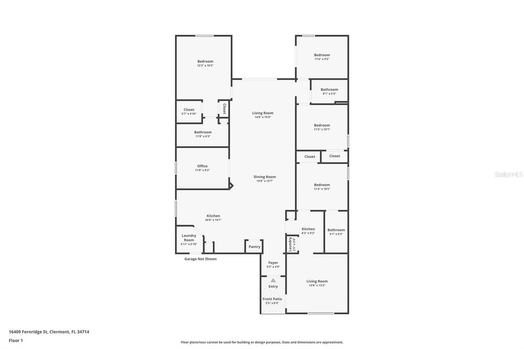 On an extra-large corner lot"”60 feet wide"”with added separation from the only adjacent neighbor for extra natural light, this Next Gen home delivers rare flexibility and privacy in Sawgrass Bay. Built in 2021, this single-story layout offers 4 bedrooms + office, 3 bathrooms, and a 2-car garage, plus true multigenerational design with two separate entrances, two kitchens/kitchenette areas, two living rooms, and two laundry spaces. The main residence features 3 bedrooms, 2 baths, and a versatile office. An open kitchen with stainless steel appliances and quartz countertops flows into the family room and out to a covered patio"”great for everyday living or entertaining. The private in-law/Next Gen suite includes its own entrance, bedroom, full bath, living area, and kitchenette"”ideal for extended family, guests, or long-term stays. Smart, efficient, and move-in ready: solar panels help offset electric bills. Community amenities include a resort-style pool, playgrounds, athletic fields, and scenic walking trails. Enjoy very low HOA fees and the wider 60-ft home sites that provide more space and privacy between neighbors. Prime Clermont location just off U.S. 27 near U.S. 192"”under 10 minutes to Lake Louisa State Park, about 30 minutes to Walt Disney World, and approximately 7 minutes to the new Wellness Way area with quick access to Winter Garden. Have it all: convenience, nature, and a beautifully designed forever home at Sawgrass Bay. Schedule your private showing today.