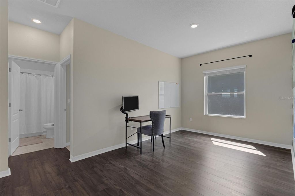 One or more photo(s) has been virtually staged. This stunning 4-year-old home is nestled in the gated community of Serenoa Village, featuring a beautiful conservation lot with serene lake views. Home warranty included. The property boasts large square footage, 4 bedrooms and 2 bathrooms, plus a bonus room perfect for use as a media room or office. The flexible second bonus room can serve as an office but is currently being used as a 4th bedroom (no built in closet). Inside, you'll enjoy an open floor plan with a modern kitchen, complete with stainless steel appliances, including a wall oven and microwave, and a large island with eat-in space"”ideal for entertaining and family gatherings. The dining area flows seamlessly into the spacious living room, which opens onto a screened-in patio through sliding doors. The master bedroom features an en-suite bathroom and a generous walk-in closet. Bedrooms two and three are located off the bonus area and share the second bathroom. The home also includes a large 3-car garage, providing ample storage space and additional parking for up to 3 cars on the driveway. Washer & Dryer included (Dryer is brand new). Relish in the tranquil lake views and catch the Disney fireworks in the evenings. Residents of Serenoa Village enjoy access to the Community Center, which offers amenities such as a 24-hour gym, pool, splash pad, playgrounds, walking trails, and scenic ponds. The community hosts various activities for residents and has low HOA fees that cover access to these excellent facilities and amenities. Located just 25 minutes from Walt Disney World, Serenoa Village is planned for future direct access to Highway 429 and Disney's Western Way, ensuring convenient transportation. The area is well-served by major stores and restaurants and is centrally located to both the east and west coasts