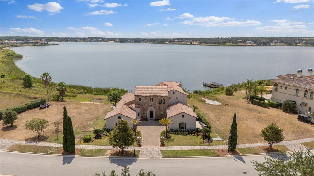Under contract-accepting backup offers. Lakefront on Lake Siena, remodeled, pool and boat dock, come and start enjoying Bella Collina for all its best amenities starting with your backyard!! Nestled within a private, guard-gated community spanning 1,900 pristine acres, this home offers more than just a place to live; it embodies a lifestyle statement. Just remodeled inside and out and also new windows and doors added, this custom villa redefines elegance, boasting 4,319 square feet of unparalleled luxury. Step inside and be captivated by the soaring ceilings, architecturally interesting beams, and the allure of travertine and hardwood flooring. Every detail in this home is a work of art. The gourmet kitchen, complete with a gas cooktop and upscale Wolf appliances, seamlessly blends form and function. A double-sided gas fireplace sets the stage for both intimate family gatherings and grandiose entertaining, warming both the interior and the outdoor pool deck. Wine aficionados will appreciate the dedicated wine cellar, capable of holding up to 600 bottles. Retreat to the expansive private master suite, your haven away from the world. Outside, a sumptuous pool surrounded by travertine decking. With the lake as a backdrop, this space is perfect for soaking up the Florida sunshine or enjoying serene evenings watching the sun dip below the horizon. Located just minutes from Winter Garden, you'll have easy access to the freshest farmer's markets, fabulous dining experiences, and top-tier shopping. Despite its convenient location, this home is comfortably outside the tourist district, while still being within reach of theme parks, Cocoa Beach, the Gulf Coast, and the bustling city of Orlando. Indulge in a lifestyle of unrivaled luxury and convenience with amenities such as a golf course designed by Nick Faldo, tennis courts, a gym, resort-style pools, spas, and a 75,000 sq ft clubhouse featuring a private restaurant. Your every desire will be fulfilled in this exclusive community. Can be sold with the lot next door.. ( Vacant lot 409 ) sellers also own that. Call for more details.