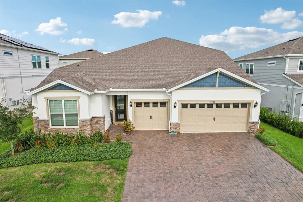 Welcome to this beautiful, like-new 2023 Pulte home, filled with custom upgrades and designed for modern living. With five bedrooms and four bathrooms, there's plenty of room to spread out in this spacious, open-concept floor plan. The main living areas and primary suite feature warm oak laminate flooring for a seamless, elegant flow. A spacious foyer leads you to a semi-private dining room with charming wainscoting. The great room is a true centerpiece, boasting a floor-to-ceiling stone fireplace with built-in shelving and opening to a stunning eat-in kitchen. The kitchen is a chef's dream, complete with upgraded cabinets, a large island with seating, stone countertops, stainless steel appliances, a tile backsplash, and an oversized walk-in pantry. A sunny breakfast nook offers the perfect spot for casual meals. The primary suite is a private retreat with a trey ceiling and a floor-to-ceiling stone wall. It features a massive walk-in closet and a luxurious en-suite with a tile shower. The main level also includes a dedicated office with glass doors, two additional bedrooms each with private en-suites, and a laundry room with a utility sink and built-in cabinetry. Upstairs, you'll find an oversized bonus/gathering room, a media room (which could serve as a sixth bedroom), two more spacious bedrooms with walk-in closets, and a full bathroom with a dual vanity and a tub-shower combo. Outdoor living is just as impressive with a paver driveway leading to a three-car garage. The covered paver patio and a nice-sized yard offer the perfect space for relaxation or entertaining. Located within the exceptional gated community of Lakeview Preserve, you'll have access to resort-style amenities, including a pool, playground, clubhouse, fitness center, and scenic trails. The home's prime location provides easy access to schools, shopping, dining, and all of Orlando's world-class attractions and amenities. Schedule a private tour!
