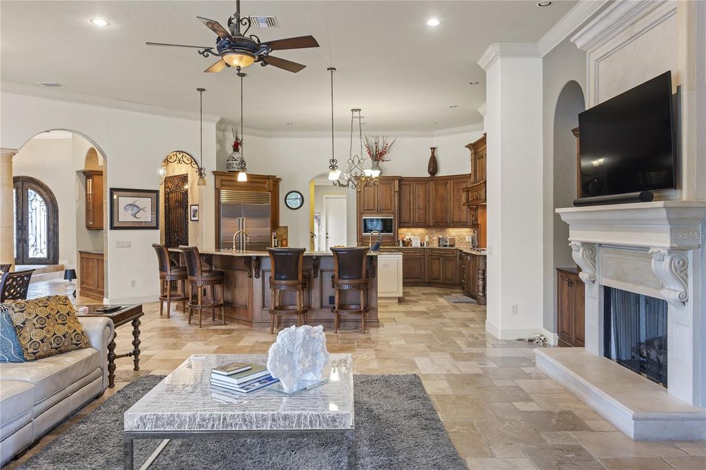 Luxury Living in Bella Collina!! Experience the ultimate in Central Florida luxury at this Mediterranean-inspired estate built by renowned Master Custom Builder, Stonebridge Custom Homes in the exclusive guard-gated community of Bella Collina. This single-story residence offers 5,878 sq. ft. of sophisticated living space on a private 1.3-acre lot, featuring 5 bedrooms, 6.5 bathrooms, and an above-garage in-law suite with kitchenette for guests or extended family. Inside, architectural details take center stage"”soaring ceilings with intricate tray and coffered designs, arched doorways, elegant stonework, and expansive windows that bathe each room in natural light. Entertain in style with a game room and full bar, a chef's kitchen overlooking the gathering room, and seamless indoor-outdoor flow. Step outside to a covered lanai with fireplace, perfect for year-round Florida living, along with a private pool and hot tub for ultimate relaxation.As a Bella Collina resident, enjoy world-class amenities including a Nick Faldo-designed golf course, resort pool, tennis courts, full-service spa, fine dining, and 75,000 sq. ft. clubhouse"” all set against a backdrop of rolling hills reminiscent of the Italian countryside. Schedule your private tour today and experience this one-of-a-kind estate.