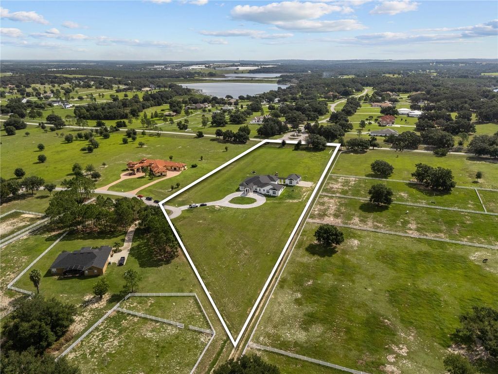 This custom-built luxury estate set on 5 pristine acres presents a rare opportunity to own 5,566 square feet of masterfully designed living space within a highly sought-after gated equestrian community. From the moment you arrive, the home's stately architecture, elegant curb appeal, and grand entry with soaring ceilings set the tone for a lifestyle defined by sophistication, privacy, and serenity. Inside, the open-concept layout is flooded with natural light and thoughtfully blends timeless craftsmanship with modern elegance. The gourmet chef's kitchen serves as the heart of the home, featuring top-of-the-line appliances, a striking leathered granite waterfall island, and generous storage, perfectly designed for both intimate gatherings and large-scale entertaining. The primary suite is a true private retreat, offering palatial proportions, spa-inspired finishes, and an atmosphere of pure relaxation. With 6 bedrooms, 5 bathrooms, and a versatile flex space ideal as a 7th bedroom or executive office, the residence provides exceptional comfort and flexibility for today's luxury lifestyle. Additional highlights include a covered lanai ideal for sunset evenings, a 4-car garage with ample room for luxury vehicles or hobbies, an 80-gallon commercial water heater, whole-house generator hookup, 6-camera 4K surveillance system with TB IVR, 64,000-grain Aquasure Harmony water softener, and a whole-house surge protector offering both convenience and peace of mind. Designed for seamless indoor-outdoor living, the property provides multiple spaces to host and entertain in style. The expansive 5-acre estate is perfectly suited for equestrian enthusiasts, featuring open pasture land, meandering bridle paths, and private riding opportunities. Residents also enjoy exclusive access to two private boat ramps, offering direct entry to Lake Morgan and the Lake Emma Chain of Lakes via the Palatlakaha River ideal for tranquil mornings on the water or adventurous afternoons. Seller Incentive: The seller is offering a substantial credit toward expanding the pool, spa, and backyard area. The renderings included in the MLS photos illustrate one potential vision for transforming the outdoor space into a resort-style retreat. This one-of-a-kind custom home offers endless opportunities to personalize and elevate the outdoor living experience. More than just a home, this estate is a statement of elegance, freedom, and refined living, perfectly balancing luxury, equestrian lifestyle, and natural beauty. A truly once-in-a-lifetime opportunity for the discerning.