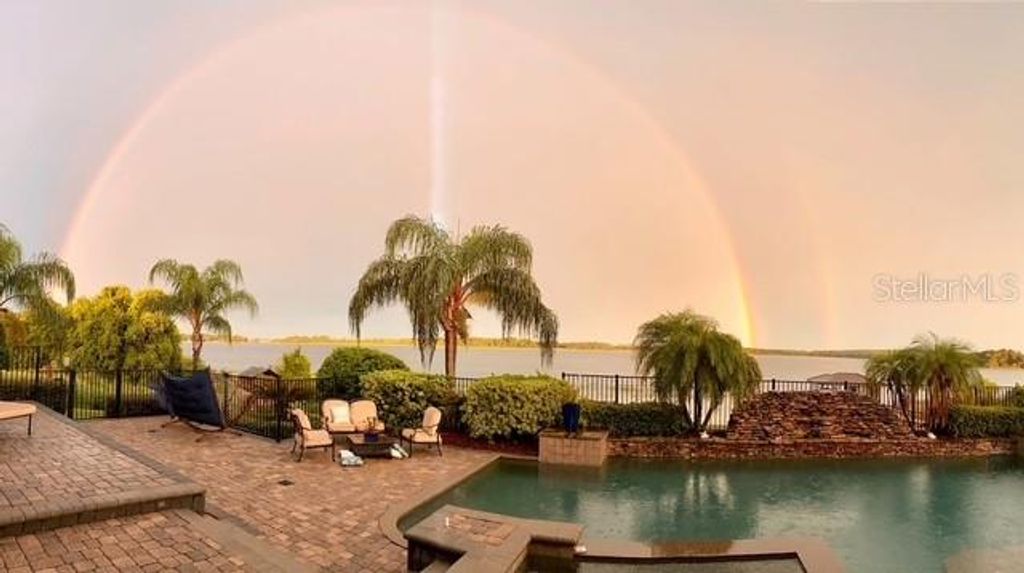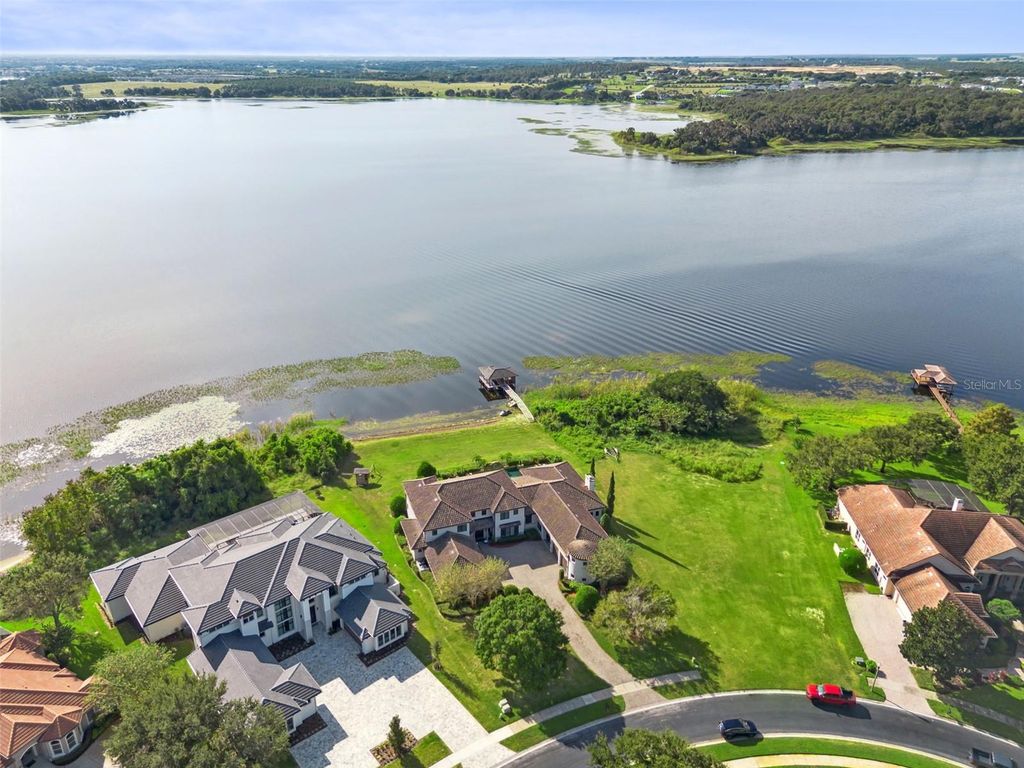 Spectacular lakefront estate in the Magnolia Pointe community! Built in 2007 by Master Builders, this single-story custom home offers ˜ 7,010 sq ft of luxury living on nearly 1 acre. Step inside to soaring ceilings, a grand staircase, and an open floor plan with breathtaking, unobstructed views of Johns Lake. The gourmet kitchen is a chef's dream with premium appliances including a Sub-Zero refrigerator, convection oven and steamer, warming drawer, granite countertops, and a large butler's pantry. The primary suite offers stunning lake views, dual custom walk-in closets, a spa-style bath with dual vanities, dual showers, a 6-foot Jacuzzi tub, and his & hers facilities. Additional spaces include a home theater, game room with wet bar, wine cellar, library, two offices, and dual laundry rooms. Outdoor living is equally impressive with a resort-style pool, waterfall spa, summer kitchen, and screened dock featuring a boat lift. Set on Johns Lake - a 2,400-acre, skiable lake known for world-class boating, skiing, and fishing - this property provides the ultimate lakefront lifestyle. From your backyard, enjoy magical sunsets and even glimpses of Disney's nightly fireworks across the water. Peace of mind comes with recent upgrades: a new roof, two HVAC units, water heater, and pool pump, all replaced within the last 4 years. Magnolia Pointe is a 24-hour guard-gated community offering amenities such as a private boat ramp to Johns Lake, tennis and basketball courts, playground, and community pool. This rare offering combines refined luxury with the best of Florida's lakefront living.
