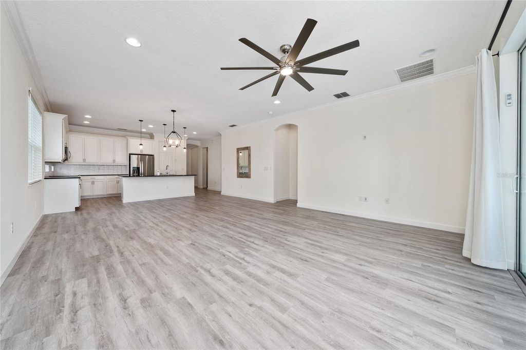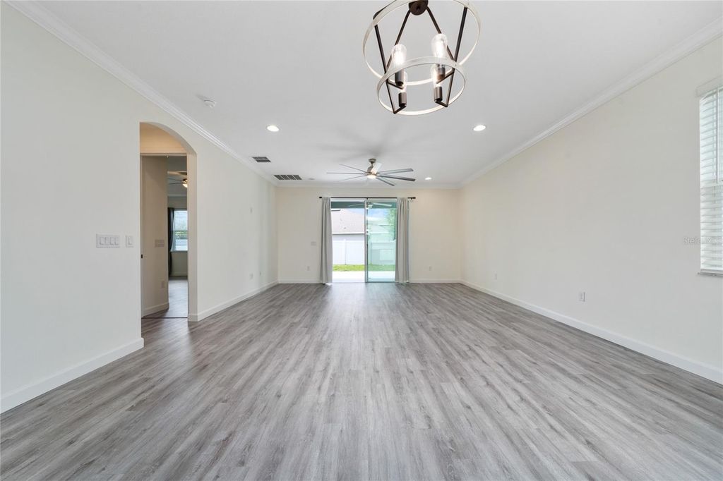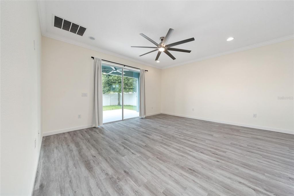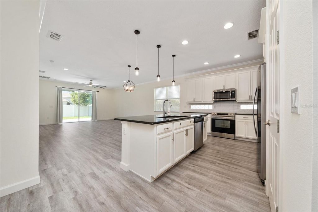 Step into this beautifully upgraded open-concept split floor plan featuring 4 bedrooms, 2 baths, and a 2-car garage. From the welcoming foyer, you will immediately notice the wide-plank laminate flooring throughout"”no carpet"”offering both elegance and easy maintenance. A mud room off the garage and a large den/bedroom adds everyday convenience. The kitchen is the true centerpiece"”open to the dining and living areas"”showcasing an oversized granite island with bar seating, a stainless-steel sink, premium stainless-steel appliances, and 42" cabinets. The owner's retreat is a private haven with tray ceilings, dual custom closets, and a luxurious ensuite featuring dual sinks, upgraded toilet fixtures, and a glass-enclosed walk-in shower with tile accents and built-in bench. Additional updates include solar panels with battery backup (paid in full), fresh interior and exterior paint, and thoughtful finishes throughout. Glass sliders from the living room extend your living space outdoors to a covered patio and privately fenced backyard"”perfect for relaxation or entertaining. This community offers exceptional value with a swimming pool and low HOA fees of only $170 quarterly. Ideally located just 1.5 miles from SR-429 for an easy commute to Orlando, and minutes to downtown Mount Dora, Renninger's Antique Center, shopping, and dining. This upgraded home is a must-see!