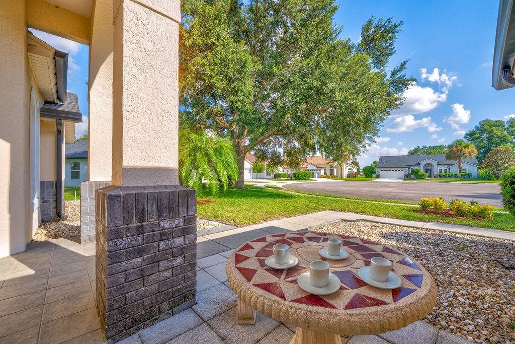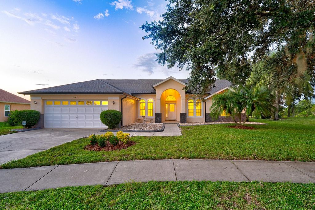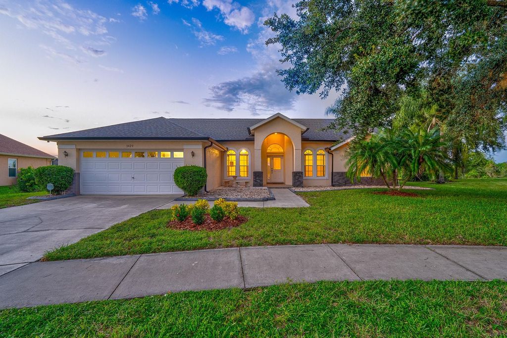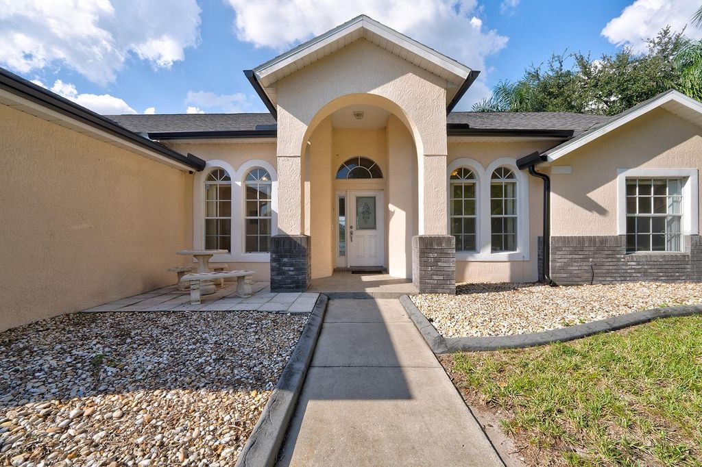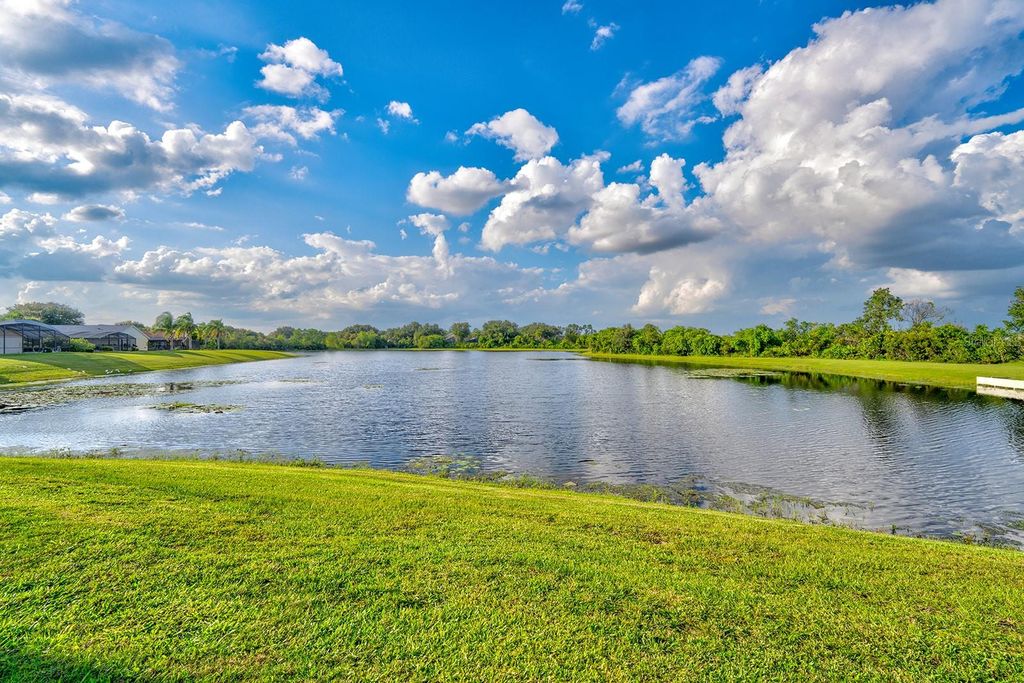 Under contract-accepting backup offers. One or more photo(s) has been virtually staged. A nature lovers dream. The phenomenal backdrop of this home needs to be seen to be believed. Watch Otters play with your morning coffee, or Eagles fly whilst sipping evening drinks by the pool. The lake view is stunning, catching the evening sunset beautifully. Primary bedroom leads out onto the covered lanai with privacy hedges. With three bedrooms and a bonus room there's plenty of versatility for growing families. This home is ideally placed on a quiet cul-de-sack with larger lots. Not to mention the perfect little doggie garden beside the pool enclosure. Buyers can rest assured with upgrade after upgrade, as a new roof was fitted in 2023, with gutters and downspouts fitted in 2024. A brand new 2025 water heater, whole home water filtration system installed in 2024. Pool, and deck were both resurfaced in 2024 with an interesting UV protection up grade.