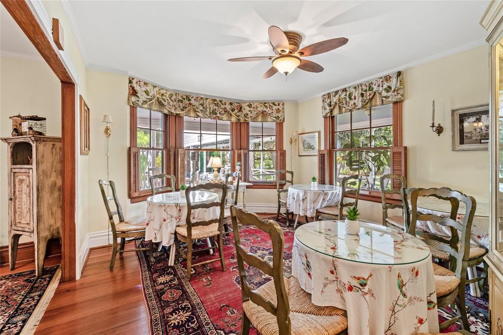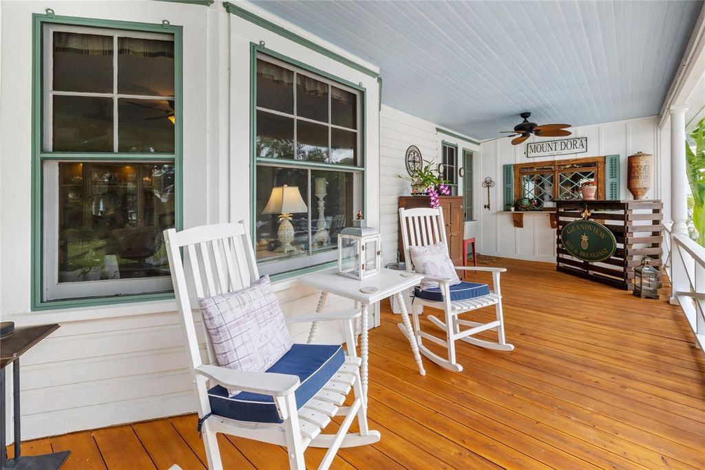 Welcome to your opportunity to continue the tradition as an admired bed and breakfast, or write your own story as a private family estate only steps from historic Downtown Mount Dora. The historic William Watt House, circa 1906, is currently operating as the Grandview Bed and Breakfast. This residence has been meticulously cared for, and all of the original features have been preserved throughout the residence. A large and inviting front porch, built with Cypress Wood from the local mill, welcomes you into the 3-bedroom, 3-full bathroom and 1-half bathroom main home. Original yellow heart pine floors, custom millwork, built-in bookcases, and two fireplaces, one being a Tiger Oak fireplace, creates a warm and inviting ambiance. The remodeled kitchen features historically inspired cabinetry, spacious countertops, and upgraded stainless steel appliances. The dining room overlooks the wrap around porch into the pool and extended patio area, which is ideal for entertaining and additional outdoor living. Upstairs, you will discover more of the historic charm, such as original light fixtures and cedar closets. The bedrooms offer beautiful views of the oversized pool and patio area, as well as incredible sunset views. Beyond the main residence, the brick paver patio leads to the 2-bedroom, 2-bathroom Windmill Cottage, a cherished Mount Dora landmark with Juniper white cedar vaulted ceilings, French doors, and bamboo floors. The Windmill's 1930's original frame remains intact, serving as both a nostalgic centerpiece and a unique architectural detail that you cannot find anywhere else. The Carriage House, built in 1996, adds exceptional flexibility with a ground-level guest suite with its own private entrance. Additionally, the upstairs of the Carriage house features a bedroom, living room, full kitchen and full bathroom, all with original bamboo flooring. This space is ideal as the Owner's Quarters, or serves as an additional space for multi-generational living within a family estate. This building features a 3-car garage, and is steps away from the large outdoor parking area tucked behind the long driveway. Arches, and charming outdoor spaces create an ideal setting for relaxation or grand-scale entertaining, all situated courtyard style around the private saltwater pool. Just a short stroll from Downtown Mount Dora's boutiques, restaurants, galleries, parks, and Lake Dora, this property captures the essence of history and all of the characteristics that make Mount Dora special. Offered turn-key furnished in the Main Home and the Windmill Cottage, this is an extraordinary opportunity to own one of Mount Dora's most admired historic homes. In addition to its unique location in Mount Dora, known as the #1 festival city in all of the United States, The Grandview is also located only 45 minutes from Disney, Universal Studios, Seaworld, The Airport and The City of Orlando. This property is unique, because it is zoned for both commercial and residential. Call today to schedule a private tour.