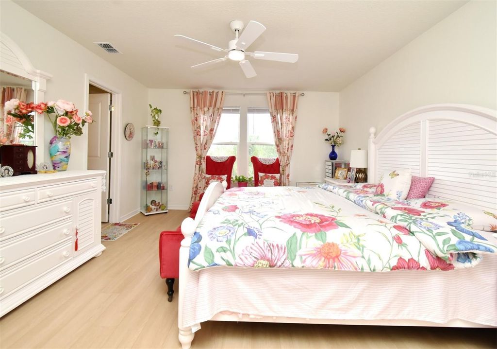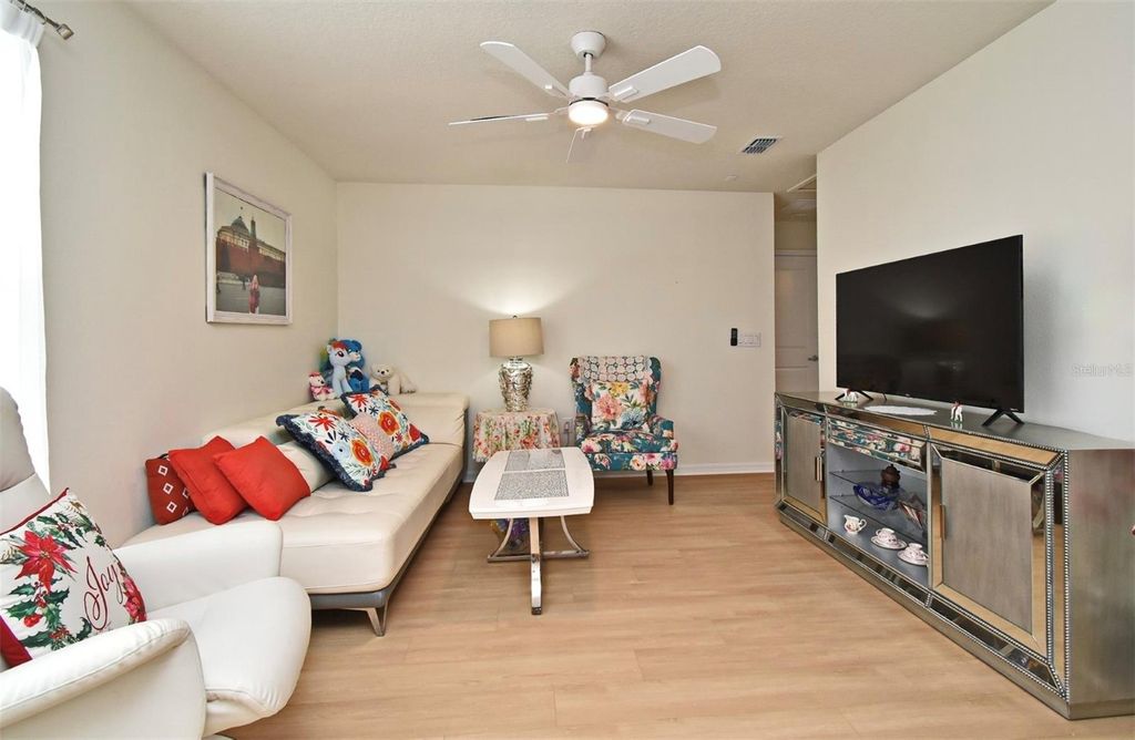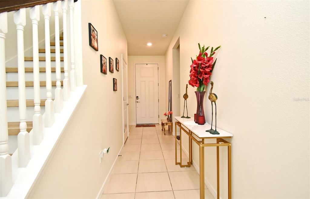 Welcome home! This stylish two-story residence offers modern amenities, a functional layout, and a spacious backyard with serene conservation views. Inside, an open-concept design seamlessly connects the living room and kitchen"”ideal for entertaining or family gatherings. The kitchen features quartz countertops, a large island, stainless steel appliances, abundant cabinet space, and a pantry for extra storage. Step outside to the covered lanai, where indoor and outdoor living blend effortlessly. The first floor also includes a full bedroom and bathroom, ideal for guests, a home office, or formal dining space. Upstairs, a versatile loft provides the perfect spot for a playroom, office, or media area. The primary suite overlooks the peaceful conservation area and includes an en-suite bathroom and spacious walk-in closet. Two additional bedrooms, another full bath, and a laundry room complete the second floor. Recent updates include stylish luxury vinyl plank flooring throughout. Enjoy resort-style amenities including a clubhouse with cozy fireplace patio, two stunning pools (a zero-entry pool and a lap pool), a 24-hour fitness center, dog park, and splash pad. Just minutes from Walt Disney World, shopping, and dining, this home offers the perfect blend of comfort, convenience, and Central Florida living. Schedule your showing today!