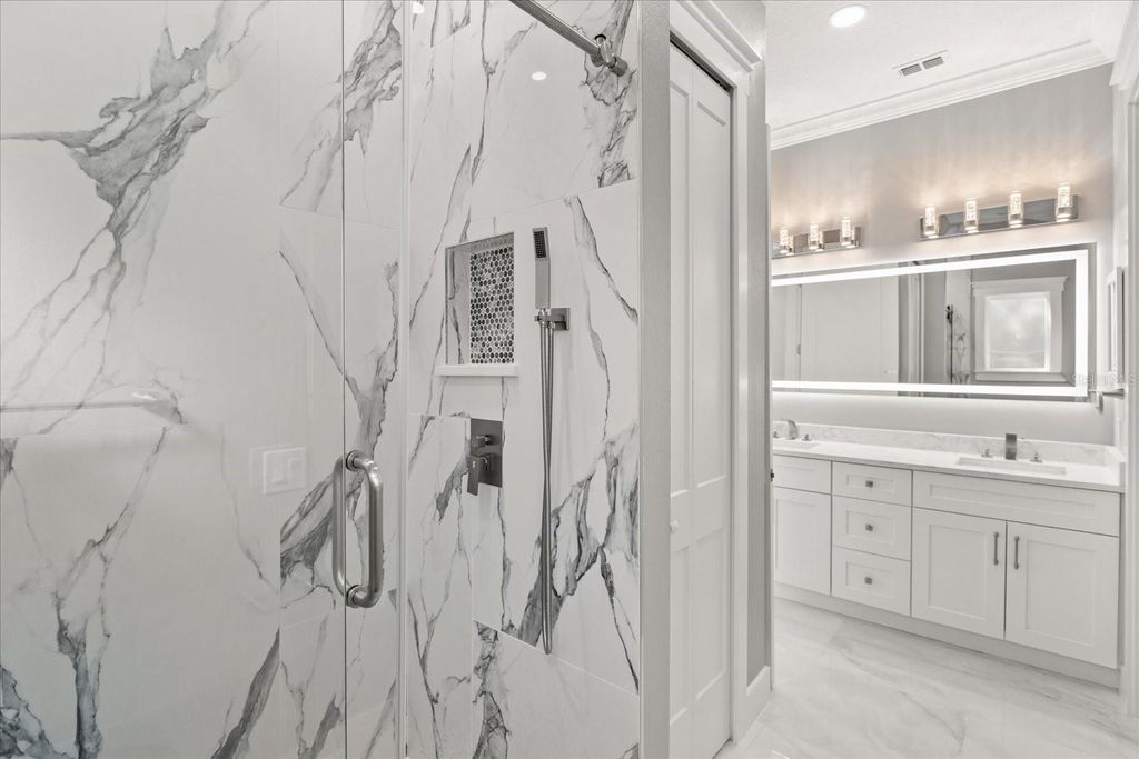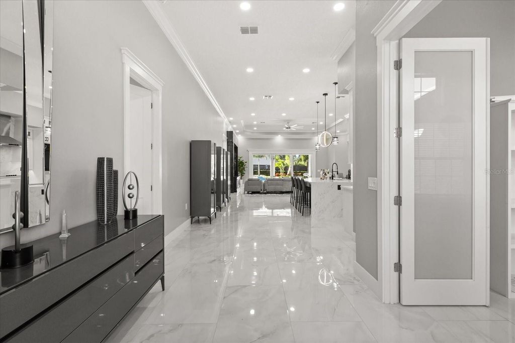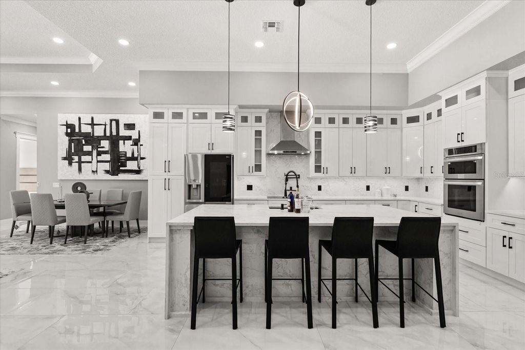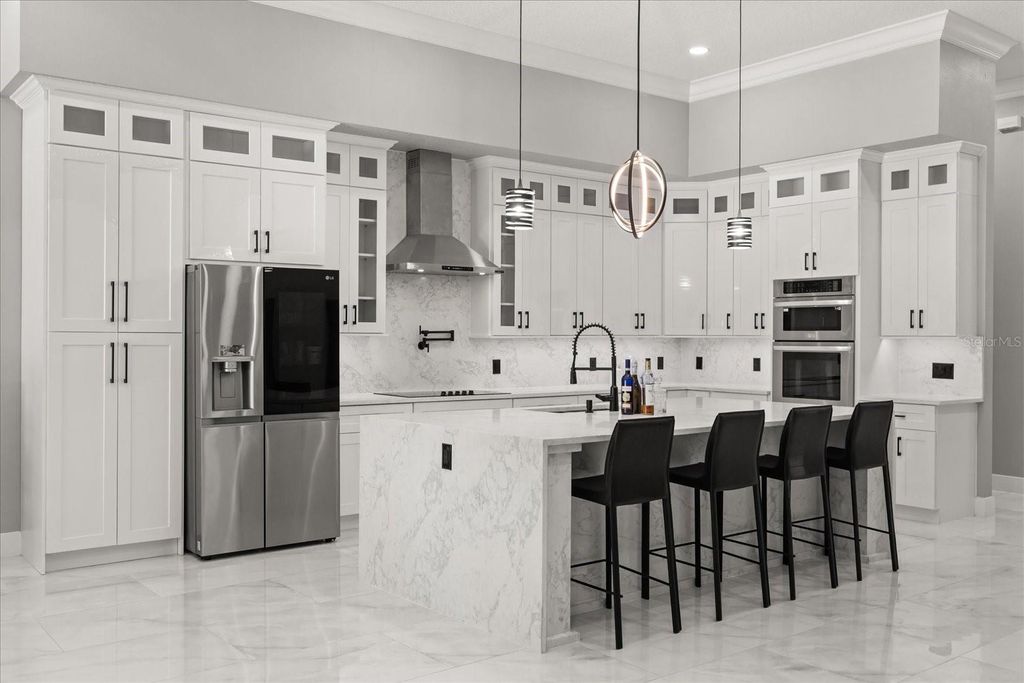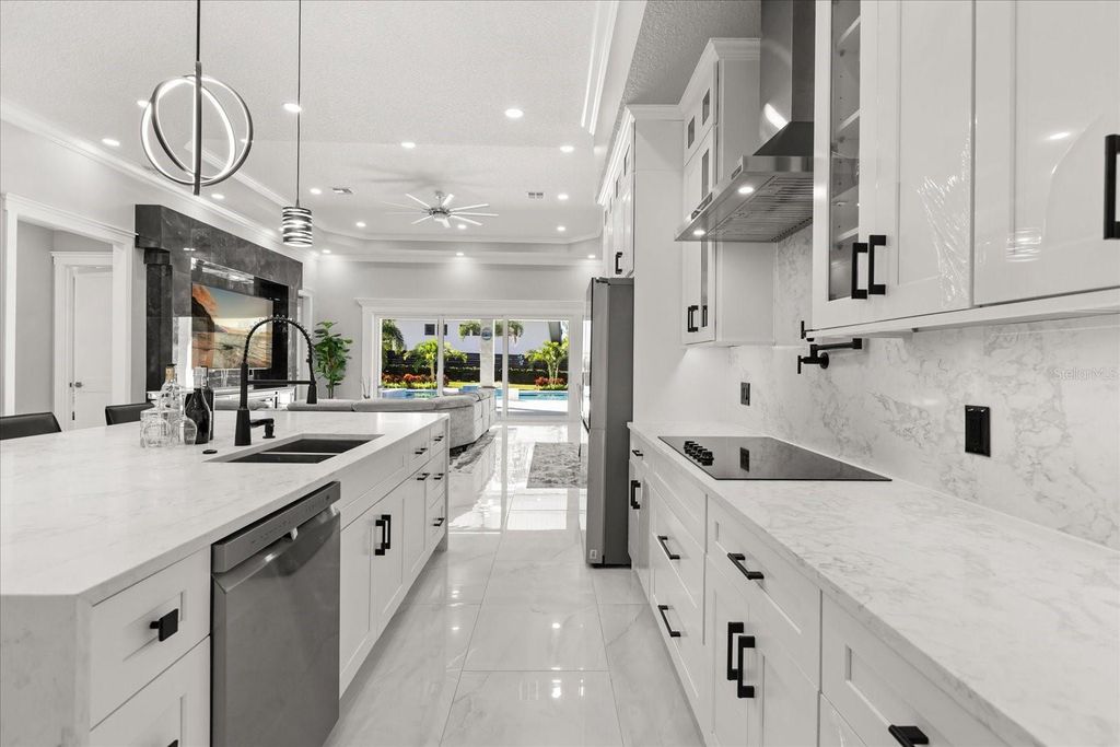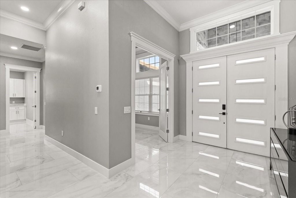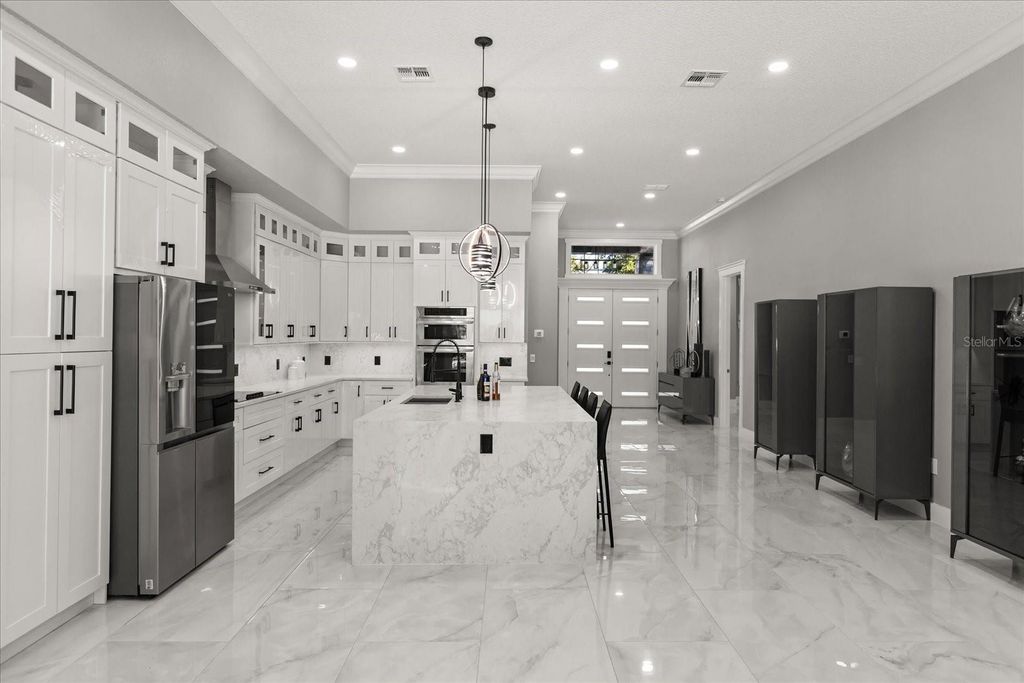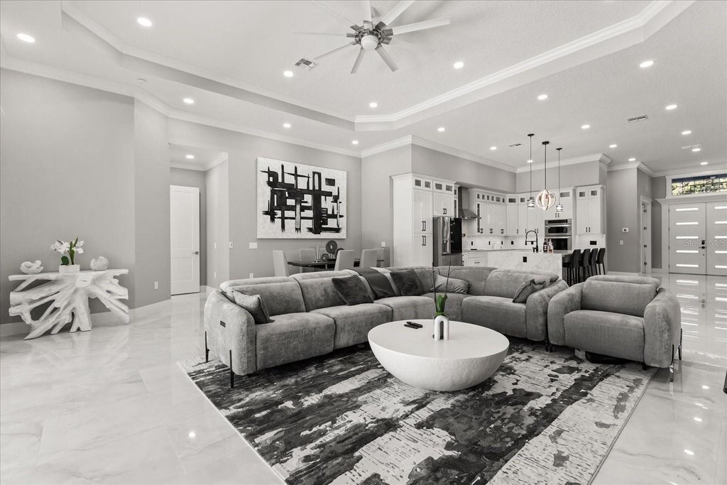 Welcome to 12830 Claywood, a breathtaking new construction luxury home, where modern elegance meets lakeside serenity. Perfectly positioned on a private cul-de-sac off Lakeshore Drive, this residence captures the beauty of tranquil lake views and offers direct access to boating, skiing, and unforgettable Florida sunsets. Inside, every detail tells a story of craftsmanship and comfort"”from the soaring ceilings and luminous travertine floors to the soft glow of LED lighting that accents each thoughtfully designed space. The open-concept layout flows seamlessly from the chef's kitchen to the inviting living area, creating a space that feels both grand and intimate. The primary suite is a retreat of its own, blending luxury with peaceful charm. Step outside and discover your private oasis"”an elegant pool and spa framed by marble travertine decking, a full outdoor kitchen, and lush landscaping that comes alive at night. With no HOA, a circular paved drive, and every modern convenience imaginable, this home was built for those who crave sophistication, privacy, and the rhythm of lake life.