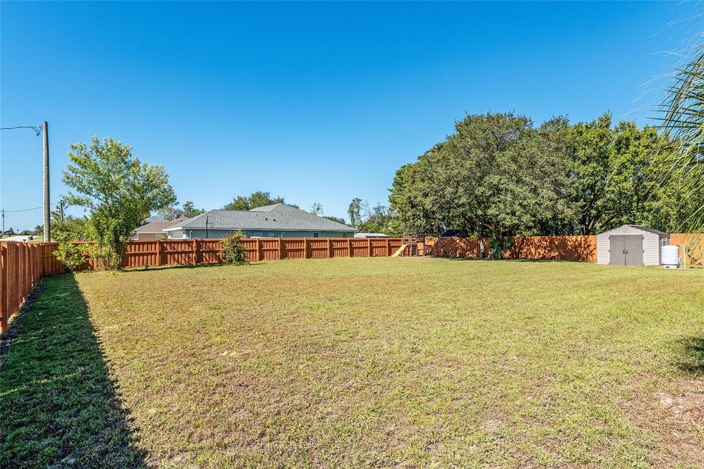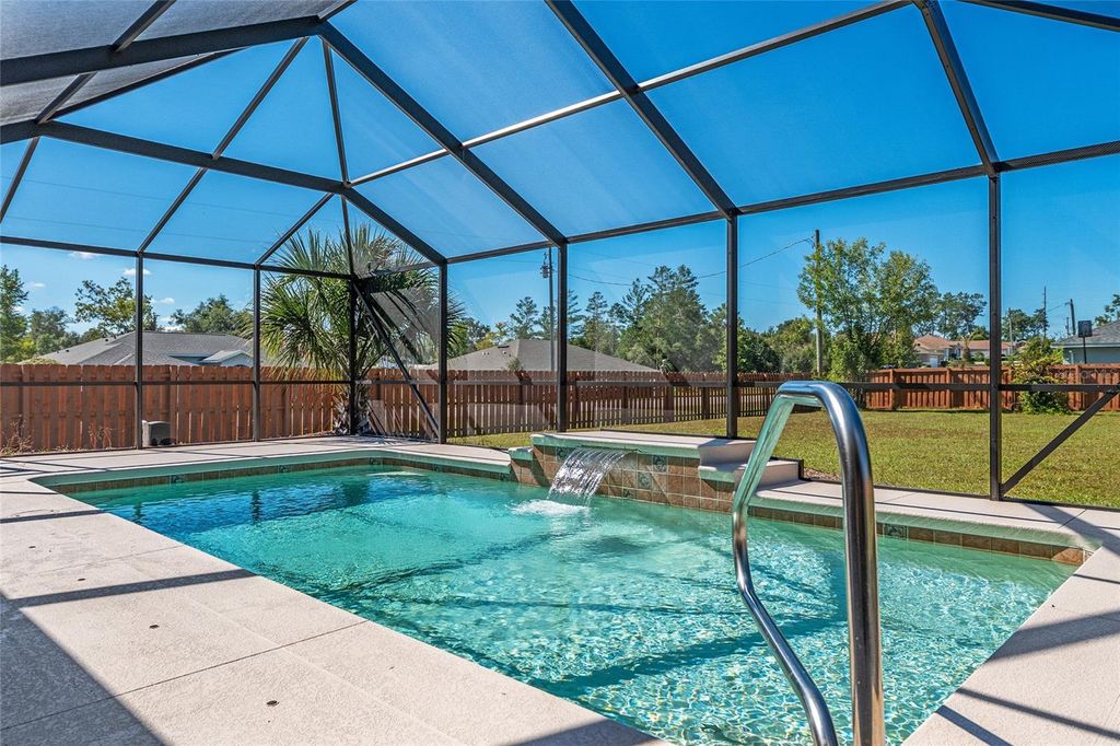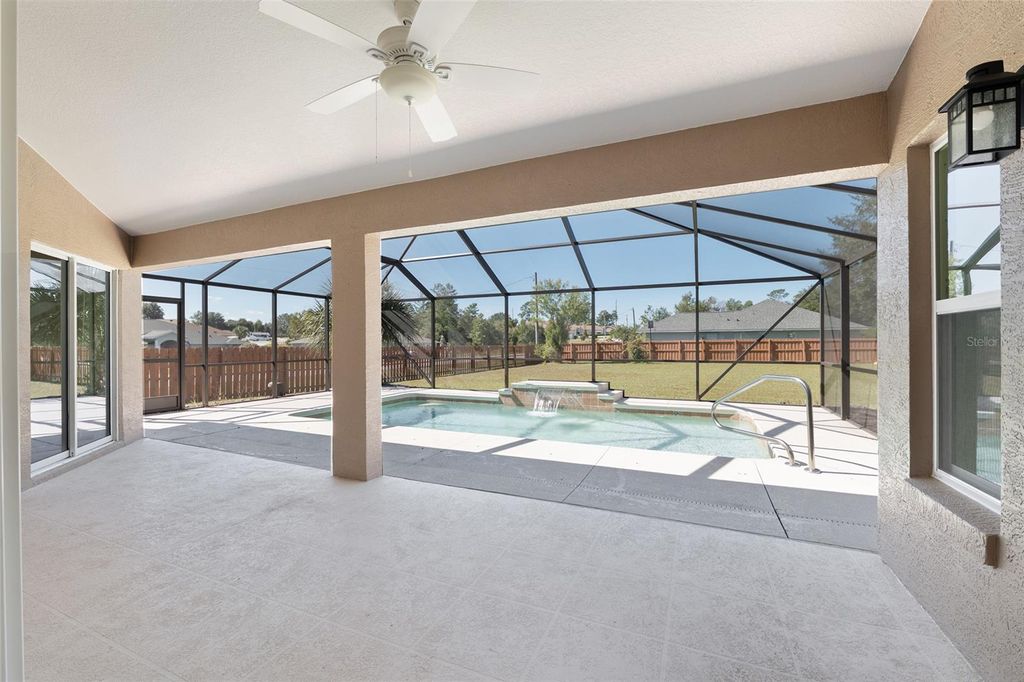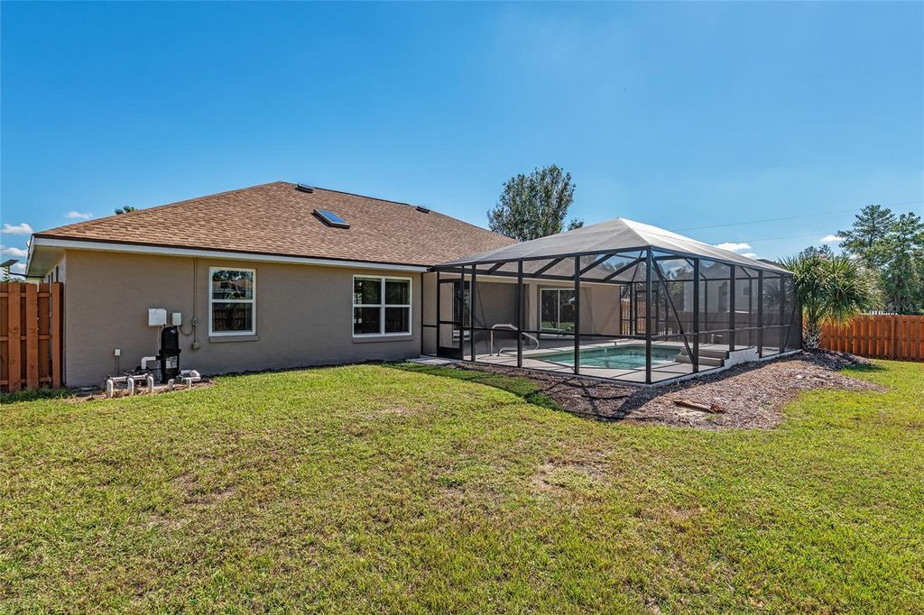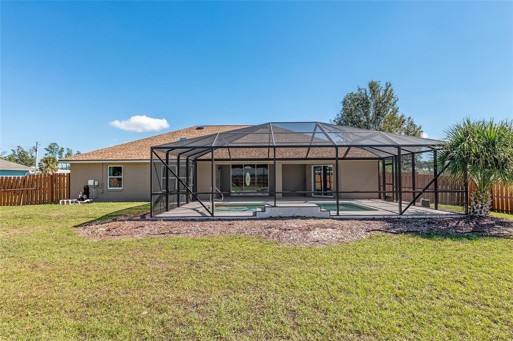 One or more photo(s) has been virtually staged. Beautifully RENOVATED 3-bedroom, 2-bath (plus office) POOL home on an oversized, nearly half acre fenced lot! This stunning property has been completely redone from top to bottom featuring STYLISH modern finishes throughout! Brand New EVERYTHING...including, tile floors, cabinets, granite counters, stainless appliances, fixtures, appliances, and all closets have built-in shelving. Double closets in primary bedroom. Enjoy a bright, open floor plan perfect for entertaining, and step outside to your private screened-in pool overlooking the spacious backyard. No HOA. NO HOA RULES or RESTRICTIONS. Conveniently located to SR 200, close to the new school, new library, and new Publix. Move-in ready and perfect for enjoying Florida living at its best! Roof is 2022. AC is 2025.