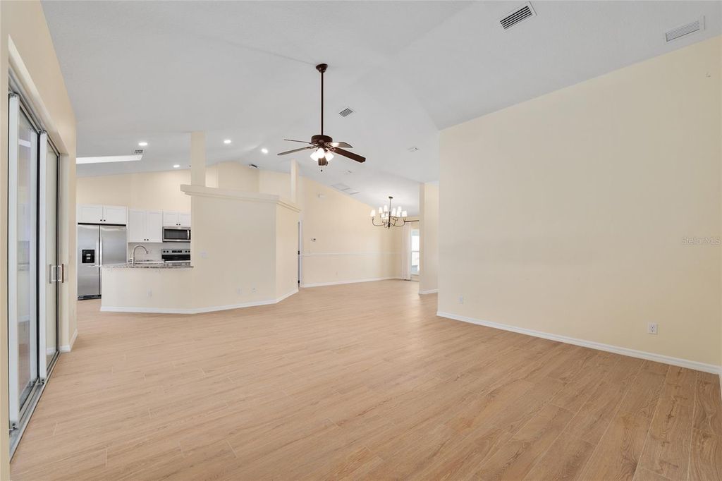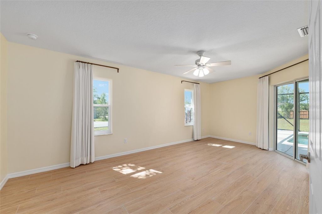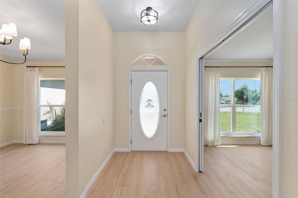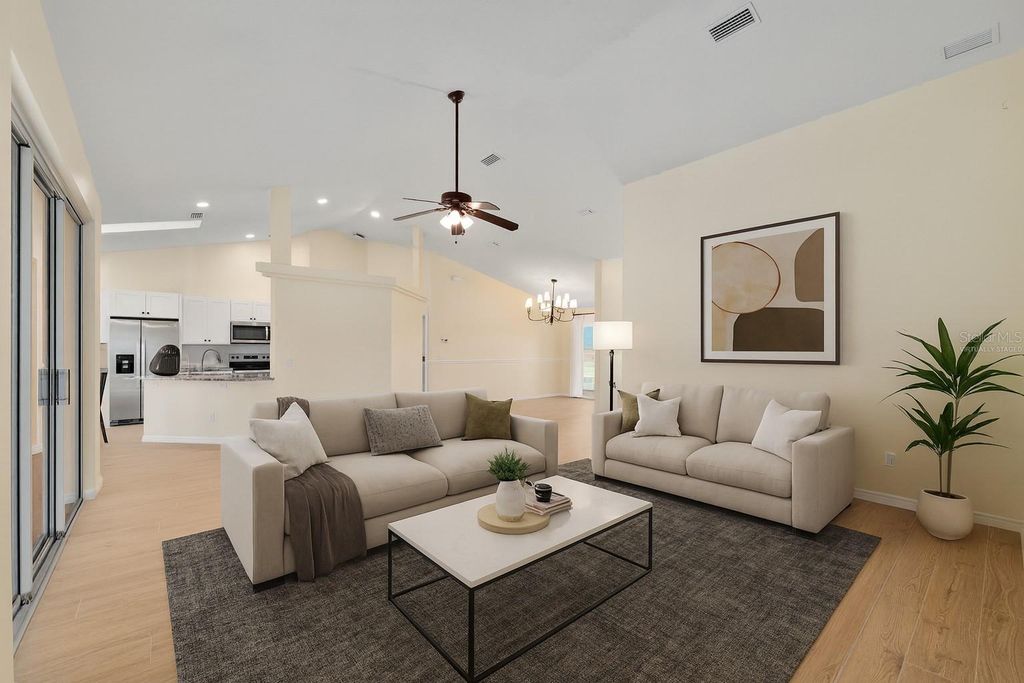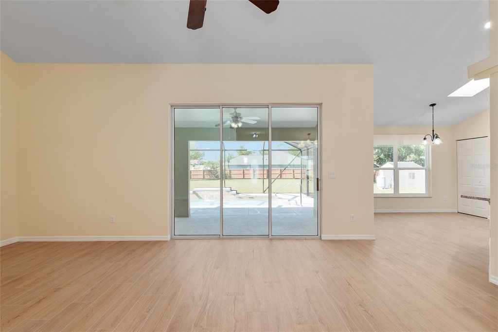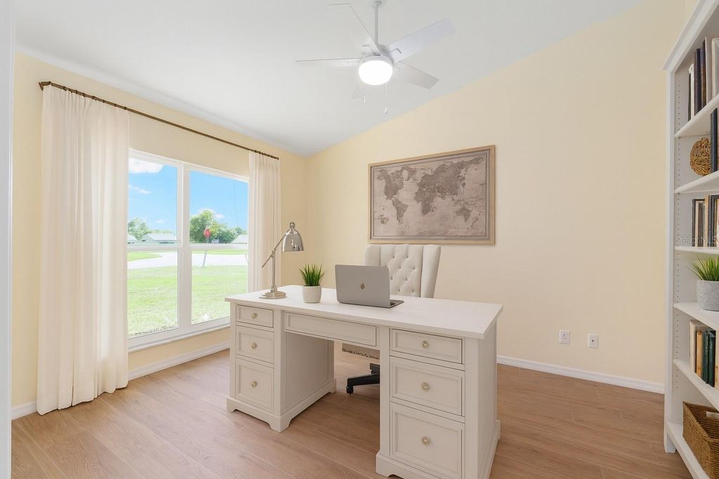 One or more photo(s) has been virtually staged. Beautifully RENOVATED 3-bedroom, 2-bath (plus office) POOL home on an oversized, nearly half acre fenced lot! This stunning property has been completely redone from top to bottom featuring STYLISH modern finishes throughout! Brand New EVERYTHING...including, tile floors, cabinets, granite counters, stainless appliances, fixtures, appliances, and all closets have built-in shelving. Double closets in primary bedroom. Enjoy a bright, open floor plan perfect for entertaining, and step outside to your private screened-in pool overlooking the spacious backyard. No HOA. NO HOA RULES or RESTRICTIONS. Conveniently located to SR 200, close to the new school, new library, and new Publix. Move-in ready and perfect for enjoying Florida living at its best! Roof is 2022. AC is 2025.