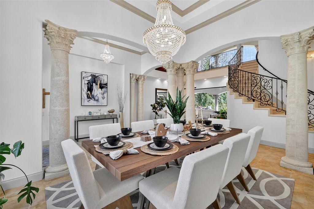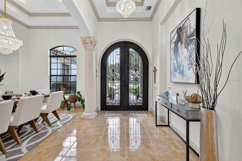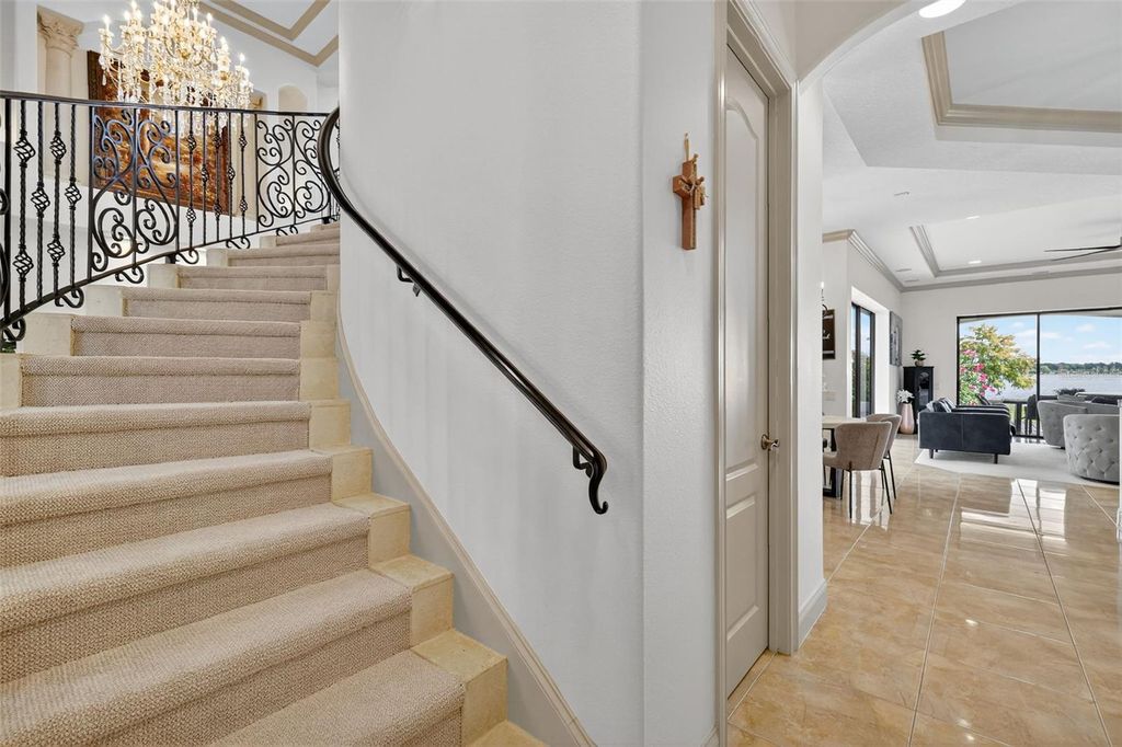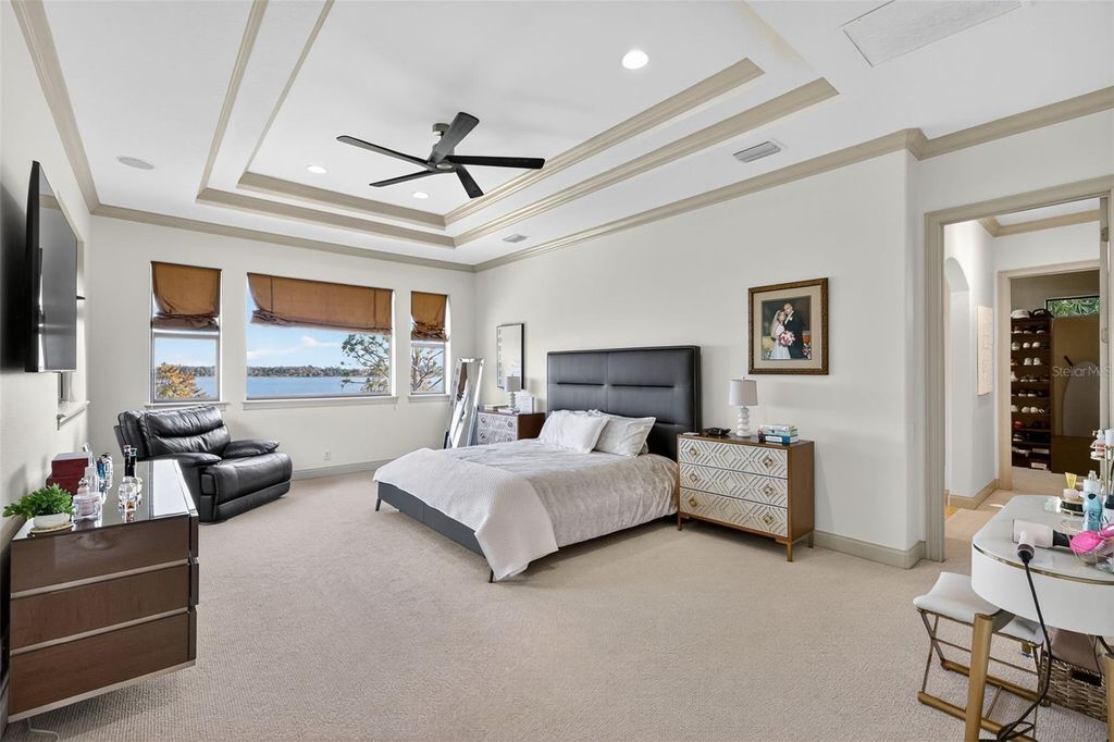 Discover timeless elegance and true Florida Lakefront living in this Mediterranean-inspired, custom-built estate, perfectly positioned within the exclusive gated community of Loch Leven. Situated on 2.95 beautifully manicured acres along the shores of spring-fed Loch Leven Lake, this home offers the rare opportunity to enjoy Direct Boating Access, Stunning Water Views, and a lifestyle designed for both luxury and leisure. Located in the only phase of the community where lots are fully cleared, this home enjoys uninterrupted, panoramic lake views"”with no conservation zones blocking your sightlines. It's a rare setting that allows you to take in the full beauty of the water from nearly every room and outdoor living space. This exquisite residence features 5 bedrooms, 4 full bathrooms, an executive office (plumbed for an additional bath), formal living and dining areas, a game room with lounge, and a spacious open-concept family room that flows seamlessly into the chef's kitchen "” complete with new stainless-steel appliances, including a refrigerator, dishwasher, and double microwave/oven combo. The primary suite upstairs offers a serene escape, with a private sitting/flex room, wet bar, spa-inspired ensuite, custom walk-in closet, and a private balcony overlooking the lake and pool. The first-floor primary suite includes private access to the pool and a luxurious ensuite bath, ideal for guests or Multi-Generational Living. Pocket sliders open to a Resort-Style Outdoor Space featuring a saltwater pool, a custom outdoor kitchen, a second lanai kitchen, and a walkway to your private dock with a new boat lift (2024). Enjoy the true Florida boating lifestyle from your own backyard. Recent upgrades include over $130k in major improvements. 2 New HVAC systems (2024), New carpet throughout (2025), Fresh interior paint (2024), Exterior painted (2025), New Boat Lift (2024), New Dock Expansion (2024). Additional features include a 3-car garage, EV Charger, Mosquito Misting System, Tile Roof, home camera/security system, mature agricultural trees, and timeless architectural details throughout. Located just 2.5 miles from the heart of Downtown Mount Dora, a nationally celebrated destination recently highlighted as one of America's Merriest Christmas Towns, this home offers an unmatched combination of luxury, charm, and lifestyle. Loch Leven residents enjoy private access to tennis and pickleball courts, a playground, a community boat ramp and dock, and secured on-site storage for boats, RVs, and recreational toys. Make this your dream home "” where elegance meets Florida lakefront living in one of Mount Dora's most desirable communities.