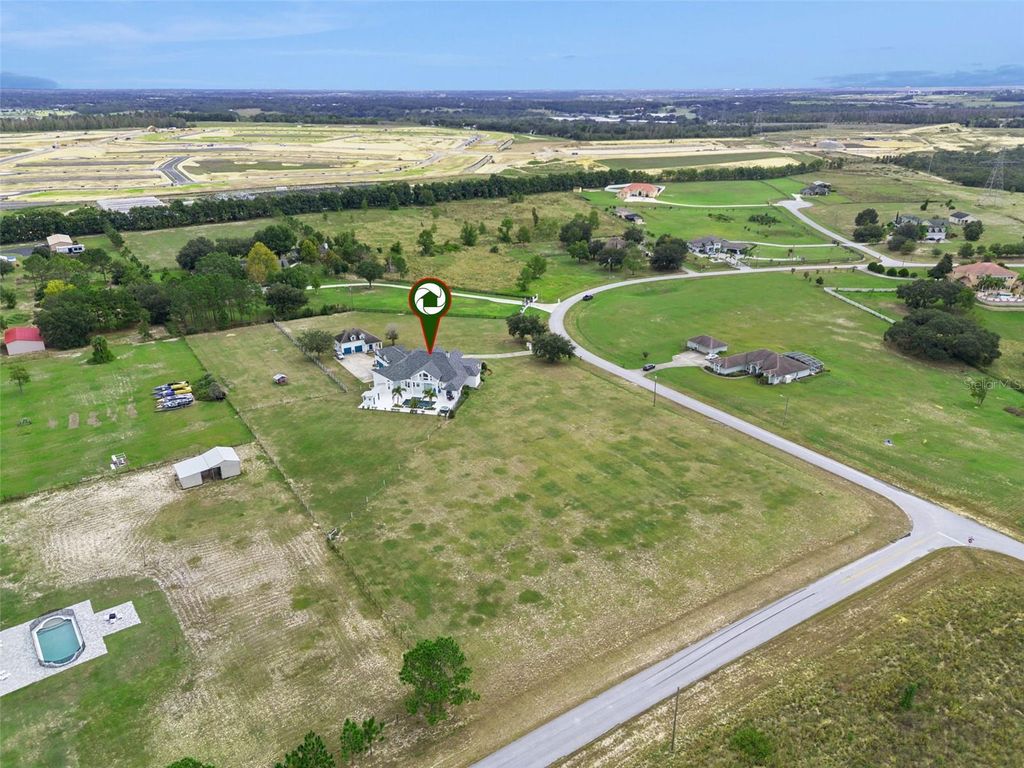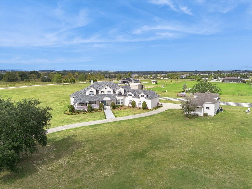 Discover Winter Garden's best-kept secret in Avalon Estates, a peaceful, horse-friendly enclave where timeless country charm meets modern luxury. This custom-built residence offers an impressive 6,400 sq. ft. under air and nearly 10,000 sq. ft. under roof, set on 4.6 picturesque acres surrounded by nature and serenity. From the moment you arrive, the inviting curb appeal and sprawling front porch set the tone for what awaits inside. Step through the double entry doors into a grand living space filled with soaring ceilings, abundant natural light, and an airy, open feel that defines Florida living at its finest. The modern farmhouse kitchen is a dream for entertaining, featuring two expansive islands, generous counter space, and seamless flow into the family room, where a wood-burning fireplace adds warmth and charm. French doors open to the pool area, complete with two oversized covered lanais, creating an ideal setting for relaxing or hosting guests. The downstairs primary suite is both spacious and inviting, featuring a private fireplace, large walk-in closet, and a magazine-worthy en suite bath. A private office sits just off the primary suite, offering a quiet retreat for work or study. Upstairs, you'll find a large bonus room with kitchenette, three additional bedrooms, and two full bathrooms"”perfect for family or guests. Don't miss the panoramic views through the large windows"”on clear nights, you can watch Disney fireworks sparkle in the distance and even catch NASA rocket launches from the east coast. Built with poured concrete tilt-wall construction, this home is as strong and resilient as it is beautiful. The laundry room doubles as a safe room, featuring metal doors, bullet-resistant glass, and reinforced concrete walls and ceiling. Additional highlights include a new roof (2025), an attached three-car garage, plus a detached 2.5-car garage with studio and full bath"”ideal for guest quarters, an office, or hobby space. Located just minutes from shopping, dining, and major highways (Florida Turnpike, 429, and 408), this estate is 11 miles from Disney World, 12 miles from Universal Studios, and 23 miles from Orlando International Airport. With its combination of space, craftsmanship, and location, this property also offers excellent potential as a luxury short-term rental. Experience the tranquility and grandeur of Avalon Estates"”schedule your private tour today and start creating lifelong memories in your new home.
