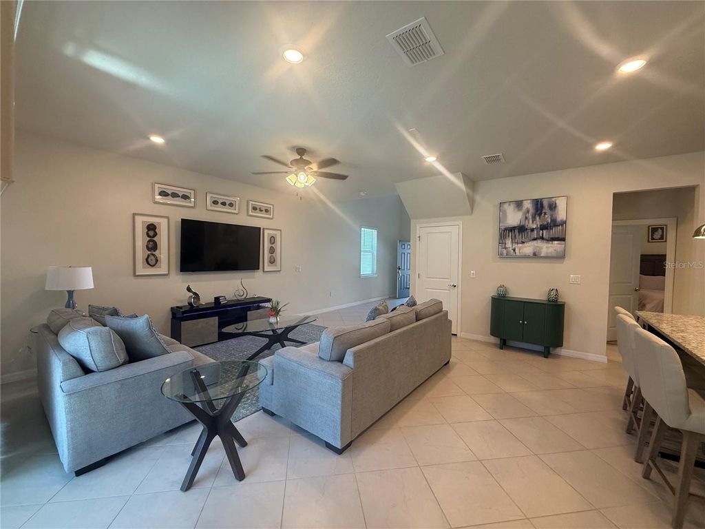 Windsor Cay Resort is the perfect choice for a brand-new vacation home or a property zoned for short-term rental, minutes from Orlando attractions Disney World, shopping, dining, and entertainment. Resort amenities include a lazy river, 9-hole mini golf, arcade, fitness center, sports courts, and more. Introducing the Lakeshore by Pulte, a beautifully finished 5-bedroom, 4-bath home with two owner's suites, each with a private bathroom. Designed for effortless living and hosting, a welcoming gathering room flows to the dining area and a chef-inspired kitchen with stainless steel appliances, quartz countertops, and timeless Dana cabinetry. Sliding glass doors open to a covered lanai and private pool, creating a seamless indoor-outdoor setting ideal for entertaining. The first floor features an owner's suite with a glass-enclosed shower, garden tub, walk-in closet, and a lockable storage closet. Upstairs offers a second owner's suite with dual sinks and a walk-in closet, plus a spacious loft and three additional bedrooms, each with its own attached bathroom for privacy and convenience. With an intelligent layout and thoughtful finishes, this home balances form, function, and style. Schedule your tour today. Short MLS version