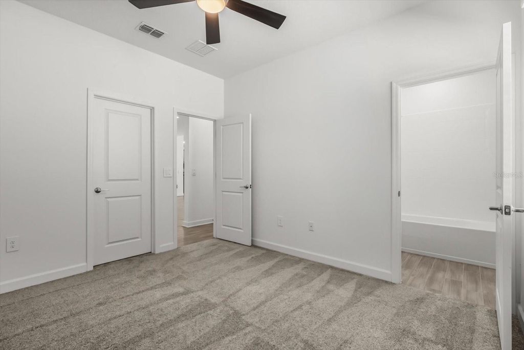New Year. New Price! Beautiful 4BR/3BA, 2,621 SF home in Trinity Lakes Signature community with an open floor plan and versatile great room"”ideal for a family room, living area, office, or more. Large kitchen with Samsung Bespoke stainless-steel refrigerator, 42 inch cabinets, sleek lighting, ample prep space, seating with stools, and an inviting eat-in area. Primary suite features a spacious room with dual walk-in closets, blackout curtains/blinds, ceiling fan with remote, walk-in shower, and dual vanities. The Jack-and-Jill bedrooms add privacy and living flexibility. Upgraded 3-car epoxy garage with hanging storage, cabinets, attic stairs/flooring, and second fridge. Outdoor features include screened lanai, paver patios, vinyl privacy fence and new sod. Additional upgrades: Govee lighting, gutters, front/rear screened porches, custom blinds, fans with remotes, termite protection, flood detectors, water softener, triple filtration, Level Lock smart deadbolt, and Ring camera. Community amenities include pool, fitness center, clubhouse, and scenic surroundings. Convenient to Lake David Park, Cherry Lake Park, local shops, and the FL Turnpike. Home is move-in ready! Assumable VA loan for qualified Veterans!