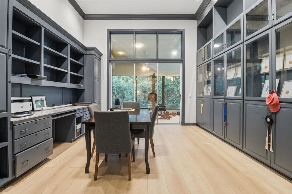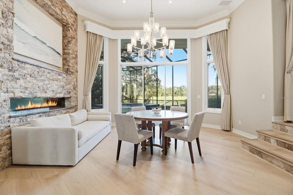 Exceptional Home in Black Diamond! Discover this elegantly remodeled 3-bedroom, 3-bath residence with two offices/dens, offering over 4,000 square feet of refined living space and unparalleled views of the #9 Quarry Lake and three lush fairways"”among the finest in all of Black Diamond. This home has been completely updated inside and out, featuring a chef's kitchen with premium appliances, gorgeous granite surfaces, and brand-new luxury vinyl flooring throughout. Every bath showcases stylish modern finishes, and the guest suite offers privacy with its own separate access. The primary suite impresses with its generous scale, two custom walk-in closets, and an adjoining private office or fitness room overlooking the lake. A spacious executive office with built-ins and bookshelves adds flexibility for remote work or study. Entertain effortlessly with a custom circular bar and a 6-foot double-sided gas fireplace that warms both living and dining areas"”engineered with an exhaust system for year-round enjoyment. Expansive pocketing glass doors open to the lanai, where a resurfaced pool and spa invite you to relax amid breathtaking golf and water views. A built-in whole-home audio system enhances the living experience, extending seamlessly throughout the master bedroom, master bathroom, living room, study, kitchen, porch, and pool area"”perfect for entertaining or simply enjoying your favorite music in every setting. Abundant storage throughout. No membership required"”available if desired. Home is offered as-is, with no known defects.