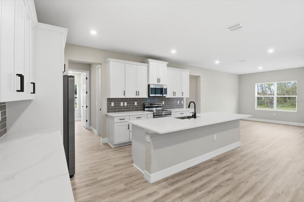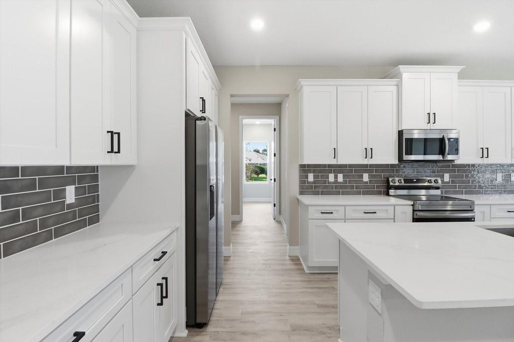 Under contract-accepting backup offers. Absolutely stunning new construction featuring 5-bedrooms, 4-bathrooms, and 3 car garage situated in the sought after Waterway Estates Community! Stand out features include gorgeous Calacatta White Quartz countertops, floor to ceiling UPGRADED designer tile in all the bathrooms, Samsung stainless steel kitchen appliance suite including washer and dryer, 9'4'' ceilings, 8' doors throughout the entire home, 100% Waterproof Mohawk Ballard LVP flooring throughout the entire home (NO CARPET), and so much more. From the moment you arrive you will notice the oversized driveway with ample parking and tasteful brick accents. Once inside, you are greeted by the front foyer that opens to the expansive living space with the living room, dining room and kitchen all flowing together in perfect harmony. The kitchen features 42'' upper cabinets, walk-in pantry, and countertop island that is sure to be the center of entertaining. The Master suite showcases the tray ceiling, dual sink vanity, oversized walk-in closet, and fully tiled designer shower with glass enclosure. Also located on the first floor are 3 Guest bedrooms that are all very well sized with two bedrooms sharing a jack and jill bathroom with dual sink vanity and tub/shower combo. Upstairs, a large bonus room loft offers flexible space for a media room, game room, or office and the fifth bedroom with additional full bathroom. This space is ideal for guests or multi-generational in-law suite living space. Indoor utility room with plenty of natural light will make laundry your favorite chore. The covered lanai is the perfect extension of the home for enjoying the Florida weather and relax with family and friends. Don't forget about the HUGE backyard with plenty of room for a pool. Extra peace of mind knowing the home is backed by Builder home warranty program. Don't forget about our Builder Incentives and preferred lender programs including closing cost assistance and Interest Rate Buy-Down. Don't wait call today for your private showing!