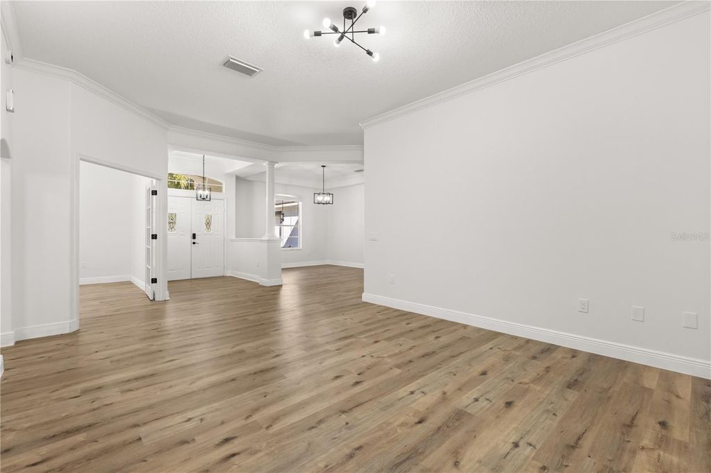 One or more photo(s) has been virtually staged. Welcome to this beautifully updated 3-bedroom, 2-bath home in the prestigious Harbor Hills gated golf community of Lady Lake. Featuring a spacious 2,500+ sq ft layout, this home offers new vinyl flooring, a brand-new roof, fresh paint inside and out, and modern light fixtures throughout. The open kitchen shines with quartz countertops, a large island, and newer appliances, flowing seamlessly into the family room and out to a screened lanai with a relaxing private spa. The split floor plan provides a large primary suite with lanai access, dual vanities, and a luxurious walk-in shower, plus two additional bedrooms for guests or an office. Enjoy the oversized garage with golf cart space, manicured landscaping, and the peace of a secure, guard-gated community with golf, tennis, and clubhouse amenities. Move-in ready and beautifully maintained"”this home perfectly combines comfort, style, and Florida living at its best.
